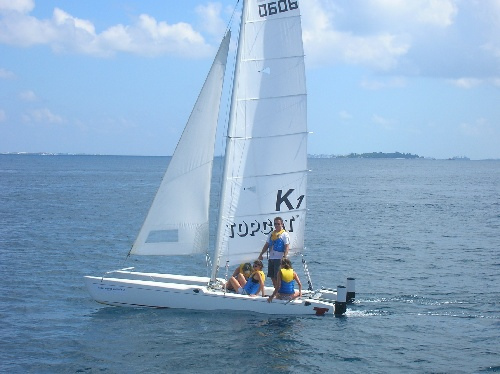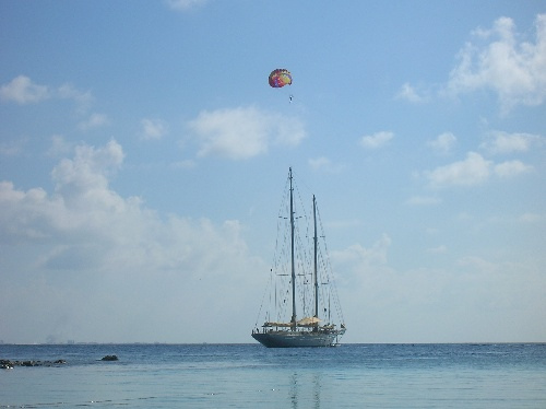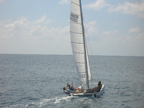 Today began well. Breakfast did indeed break the fast, and a flurry of activities erupted afterward. After cleanup, we dove into boat appreciation with a gusto rarely seen before on the face of this wide earth. Then, with Argo sparkling, some of us went to the small resort island near which we are anchored. I was among them, and after we ate, we wandered about on our own accord, while those still onboard presumably did whatever they did. A few hours later, we took turns sailing small catamarans. It was most enjoyable, and after that, it was back to Argo to get ready for a night out. Laughter was the theme of the outing. It has been a most enjoyable Valentine’s Day.