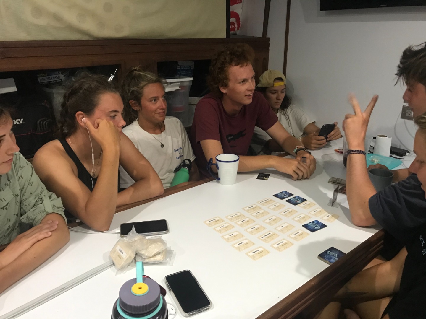 We spent the rest of the day working out, studying, playing games, and goofing off. Everyone has been enjoying a stable boat to do work and relax. The crew is also very thankful to be able to talk to family and friends when we can. We miss all of you and will be home soon 🙂