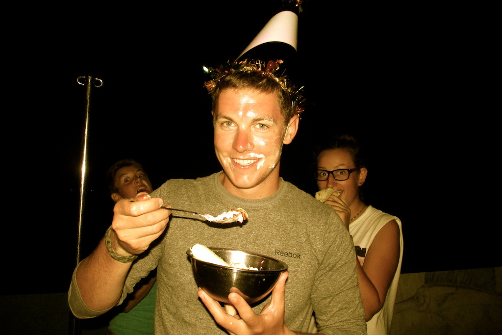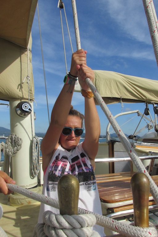 BA for Days. It was a BA day on Argo. We approached Phuket with the rising sun after a single night jaunt from Langkawi. There was excitement for boat lovers as Vertigo, the seventh largest and arguably the most beautiful sailing yacht in the world, was anchored near the entrance to the harbor. After we dropped anchor, we ate a quick breakfast and got started on a big clean, known affectionately as Boat Appreciation. There was a motivation to finish BA early because the promise of shore time was waiting at the finish line. While we got off to a fast start, Thai immigration threw us a curveball by requiring each shipmate to be present at the immigration office onshore. We quickly dropped everything and donned pants to assert our boat’s steadfast adherence to cultural correctness. Once we returned to the boat, we removed our pants and returned to the Boat’s needs. We had the pleasure of cleaning my personal favorite place on the boat, the lazarette. While most think of it as a storage space in the hull, I think of it as Argo’s own steam sauna. When the sun reached its scorching peak, pine sol and the freshwater hose made it so nice down there that you could hardly find space because so many people came down for a nice sweat and a bit of relaxation. After lunch, a group went to provision at a local grocery while the rest of the crew went to enjoy Phuket. Most of the shore goers spent time in cafes catching up on life back home. James, once again, proved that Canada is a superior nation and took the chance to visit the massive Buddha sculpture on top of a hill overlooking Phuket. The most important events of the day, the celebrations of birth for the young Kyle Hay and Annie Sisson, were dependent on the provisioner’s return from their quest for all things tasty. The massive scale of the provision, because of the impending Turkey Day, meant that the missionaries of Munch didn’t return until well past my bedtime. Fortunately, late-night banana splits taste even better. The sugar hit us hard because the celebration quickly degenerated into dancing to Shakira’s salon. Our mental state was so impaired that we even forgot to squeeze a long 5-year streak.