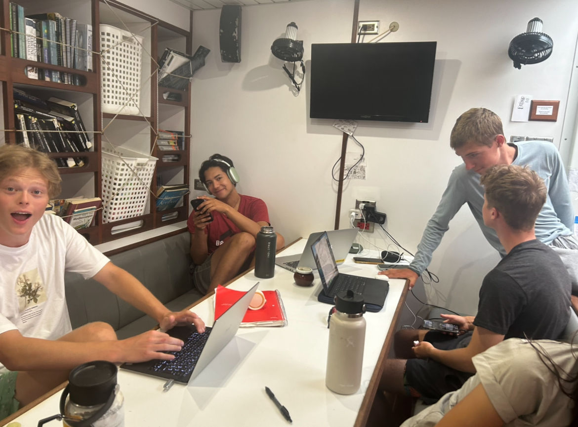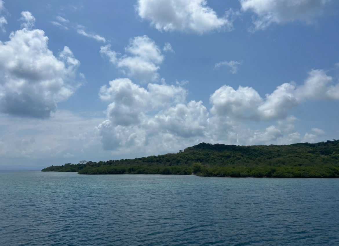 Today, we were all awoken by the lovely sound of an impromptu fire alarm. No worries; it was just yummy blueberry pancakes! After breakfast, we had a lecture on Oceanography where we went more in-depth on the topic of salinity and ions in saltwater. After that, we did a mini passage prep and moved to an island surrounded by mangroves. During our passage, we spent some time preparing menus for the upcoming passages. Claire will be provisioning 2,000+ meals in Panama (So happy I don’t have that job, RIP Claire). Once we arrived, we went in groups of ten to do a mangrove lab. We snorkeled around them to get a look at their roots and what was going on beneath the surface. So many cool sillas were chilling, and many baby fish as it is a nursery habitat. As Sam would say, science is so cool! It was a highlight of the day for sure, especially because we got towed back on a line behind the dinghy. We lost Mike…twice…but we got him back, and he is on the boat now! After that, we did yet another passage prep and got ready for our trip to Panama. While underway, we had a delicious pizza made by Makenna, and now we are doing a clean-up. A good chunk of us will be up all night writing our literature reviews for oceanography, so wish us procrastinators luck…we’ll need it.