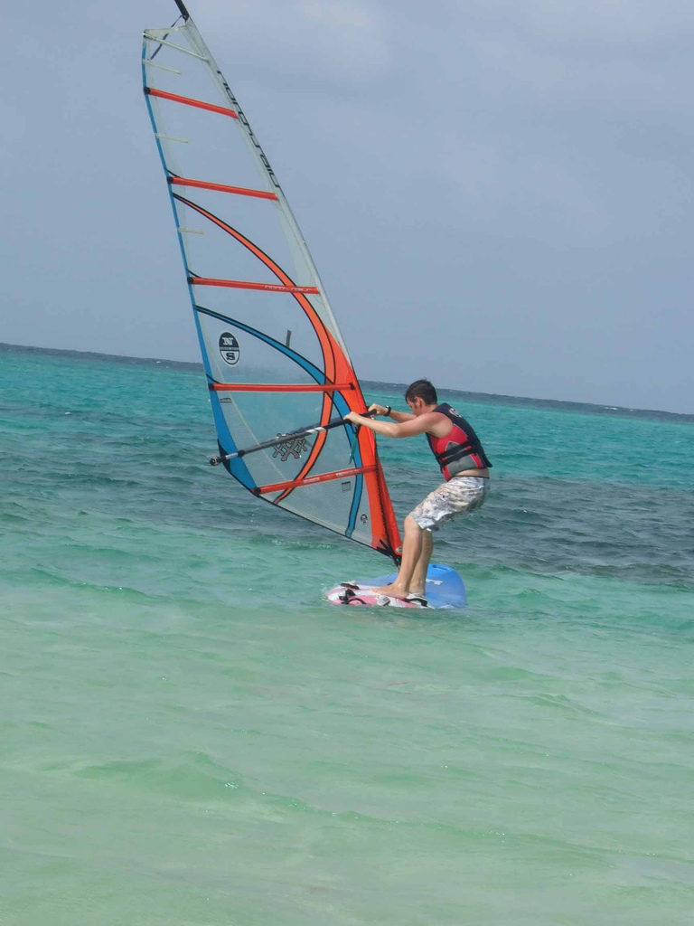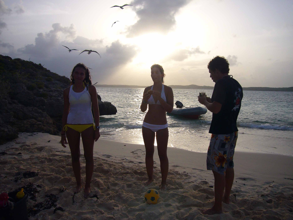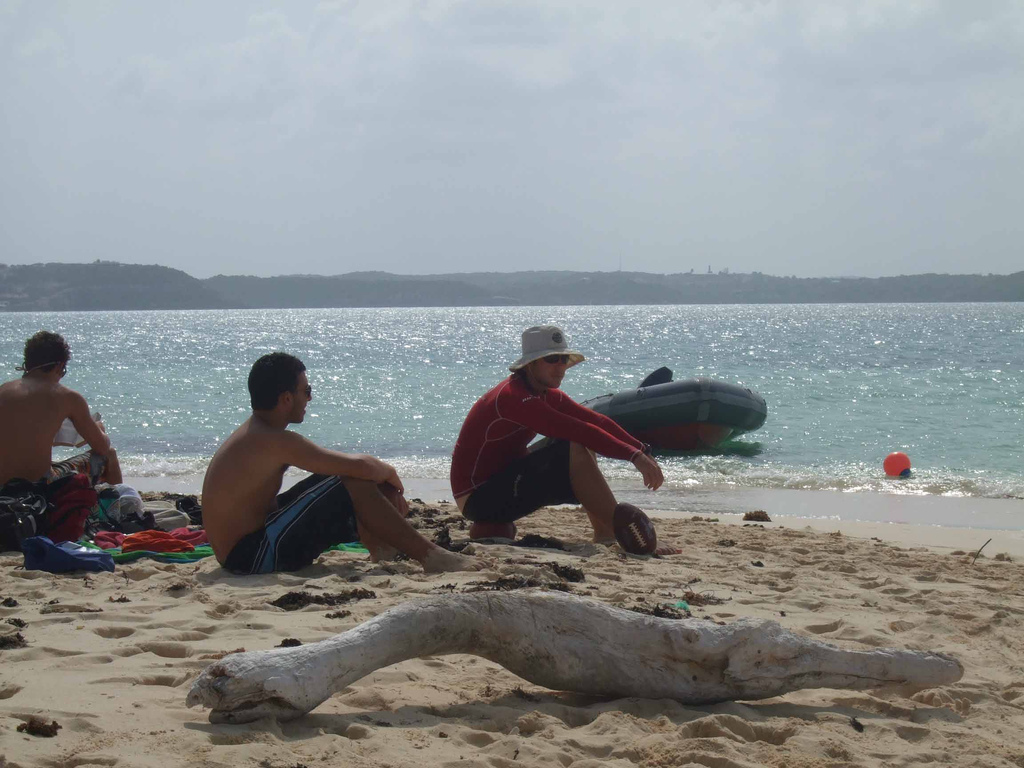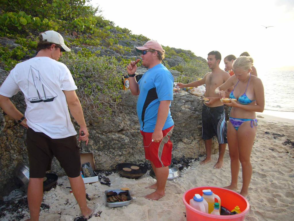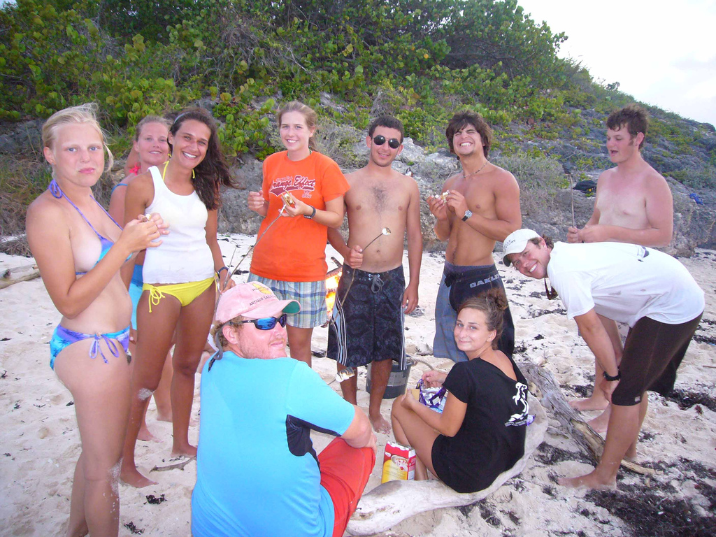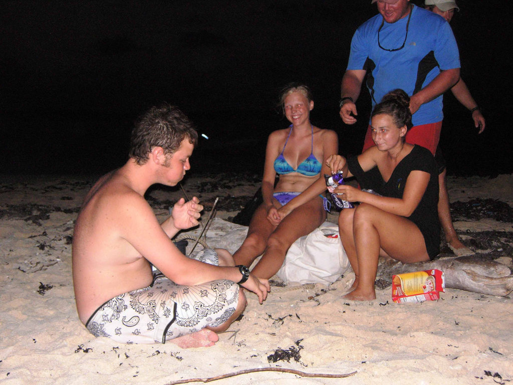 The crew of Ocean Star woke up early this morning, hauled up the anchors, cast off the dock lines, and moved over to the fuel dock to take on fuel for the rest of our voyage. After a 2 hour motor and a bit of navigating through small passages to avoid reefs, we arrived on Green Island. The crew enjoyed an MTE class, where they learned how to operate the ship’s VHF radio, followed by lunch. After cleanup, we all headed over to the beach to do some windsurfing and relaxing. While some tried their hand at windsurfing, others searched for wood for our beach BBQ and bonfire later that night. While on the search for wood, the shipmates found and rescued a baby sea turtle stuck behind some rocks. After a few pictures, they walked it to the ocean and set it free. Dan and Graham fired up the grills, and everyone had their fill of hot dogs, hamburgers, and veggie burgers. Shortly after, we set up the bonfire, and everyone filled their bellies to the brim with SMORES. We hung out around the bonfire until everyone was ready to head back to Ocean Star. Once back on board, we did the remaining dishes and hauled up the dinghies on deck. Soon after, the crew went to bed in preparation for another action-packed (lots of science and diving!) day tomorrow.