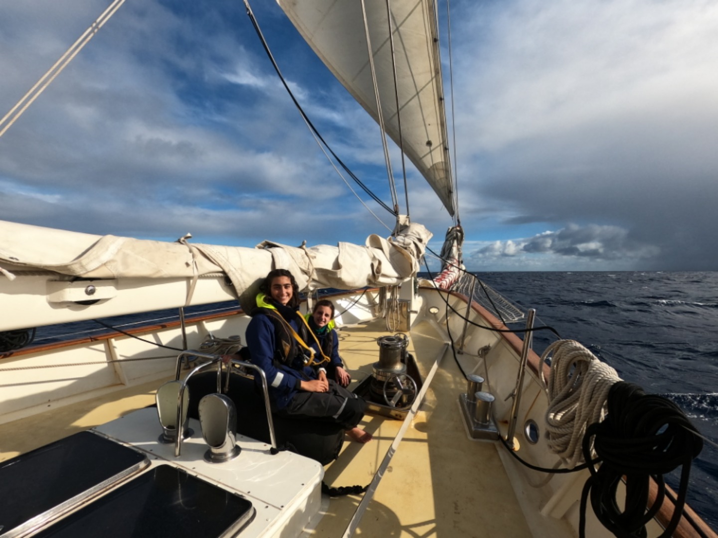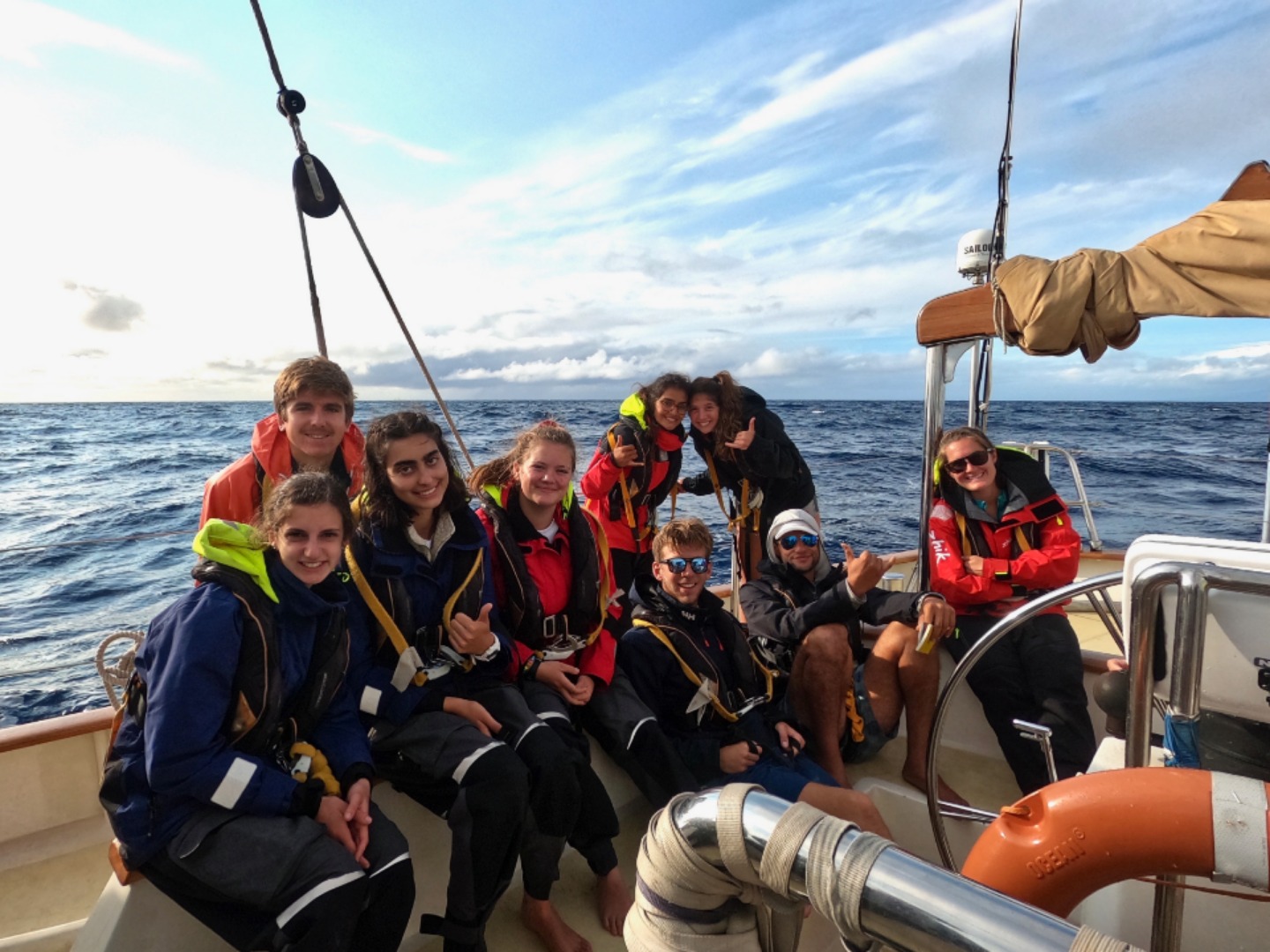 Today was a crazy-filled day! We started off the day with an incredible breakfast that consisted of Beignets, Bananas, and Watermelon made by our chefs of the day, Andrew, Marion, and Seve. They were absolutely delicious and got everyone super excited for the day to come. After breakfast, we did passage prep in order to get the boat ready to head back out to sea for our next passage to Maderia. This consisted of jobs such as getting the sails prepared, resetting the jack lines, disposing of all our trash, ensuring that the boat is 40/40, and securing our two dinghies. Everyone worked very hard, and we were done in no time! During this time, everyone went and signed the mural that Ethan has been working super hard on (the one that was featured in yesterday’s blog)! Shortly after passage prep was completed, we heard from Sarah that our laundry was on its way back. This excited everyone as we were ecstatic to have clothes that once again smelled fresh. Once everyone had put away their clothes and tidied the cabins, we put on our PFD’s and got ready to head off the docks. We all assisted in getting Argo off the docks by either being on the fender team or pulling the lines off the docks. Very shortly after departing Horta, we were once again amazed by our chefs with another outstanding meal, cajun mac and cheese! After we all filled up on a delicious meal, we got right into clean up, followed by setting our sails. Raising the sails got everyone super excited as it set in that we were officially starting our next passage. Immediately after this was completed, we all headed down below in order to take our International Crew Certificate Exam for seamanship class. Next, we headed back up on deck and went over the station bill (procedures we follow in case of an emergency) again without new watch teams, so everyone was super clear about what their job would be if something were to occur. It was a lot of fun to get to work with the new watch teams that we found out about last night after dinner! After we were done, we officially started to watch teams, with team 2 finishing off the 2-6 watch, which led right up to dinner, along with watch team 3 taking overwatch from 6-8. Dinner was, as expected, just as amazing as the previous meals today. It was teriyaki beef and noodles along with zucchini. We are all super excited about the passage ahead, along with the following wind, which should make this passage very peaceful.