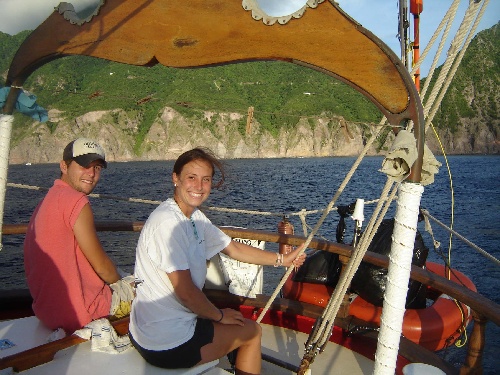 Today began early as we came through Round Rock Passage just after sunrise. It was a great sail from Saba, although quite wet and had some dramatic lightning streaks. We arrived safely and anchored just outside Spanish Town while Simon and I cleared customs and picked up some provisions. Meanwhile, the shipmates did a great job cleaning Ocean Star during their Boat Appreciation. Soon, we were all back aboard and heading to Salt Island. We enjoyed lunch underway and anchored on the northern side of the island. We dove the RMS Rhone in the afternoon, spotting turtles, large jacks, and big barracudas. It was a great dive. We then motored up to Peter Island and picked up our mooring in Great Harbour Peter. We then enjoyed one of our last few saltwater showers and enjoyed Mexican night. The evening was spent studying for exams tomorrow.