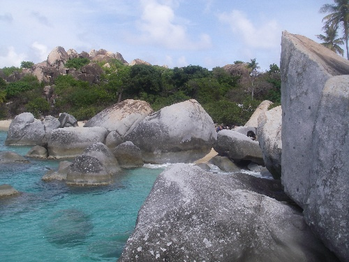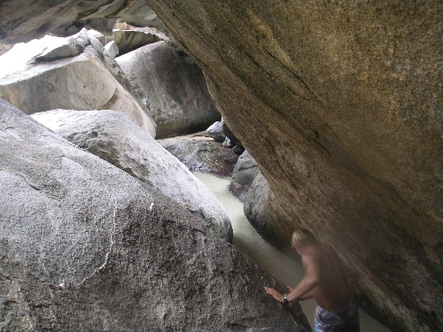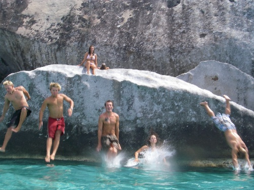 Ocean Star arrived home to the BVIs this morning, passing through the Round Rock passage at 0830. Once anchored, the boat was cleaned, and customs and immigration cleared. Once lunch was served, we all went ashore to explore the famous Baths, a group of granite boulders and caves in the tropical waters. We then motored up to Gorda Sound and are now studying for the MTE exam.