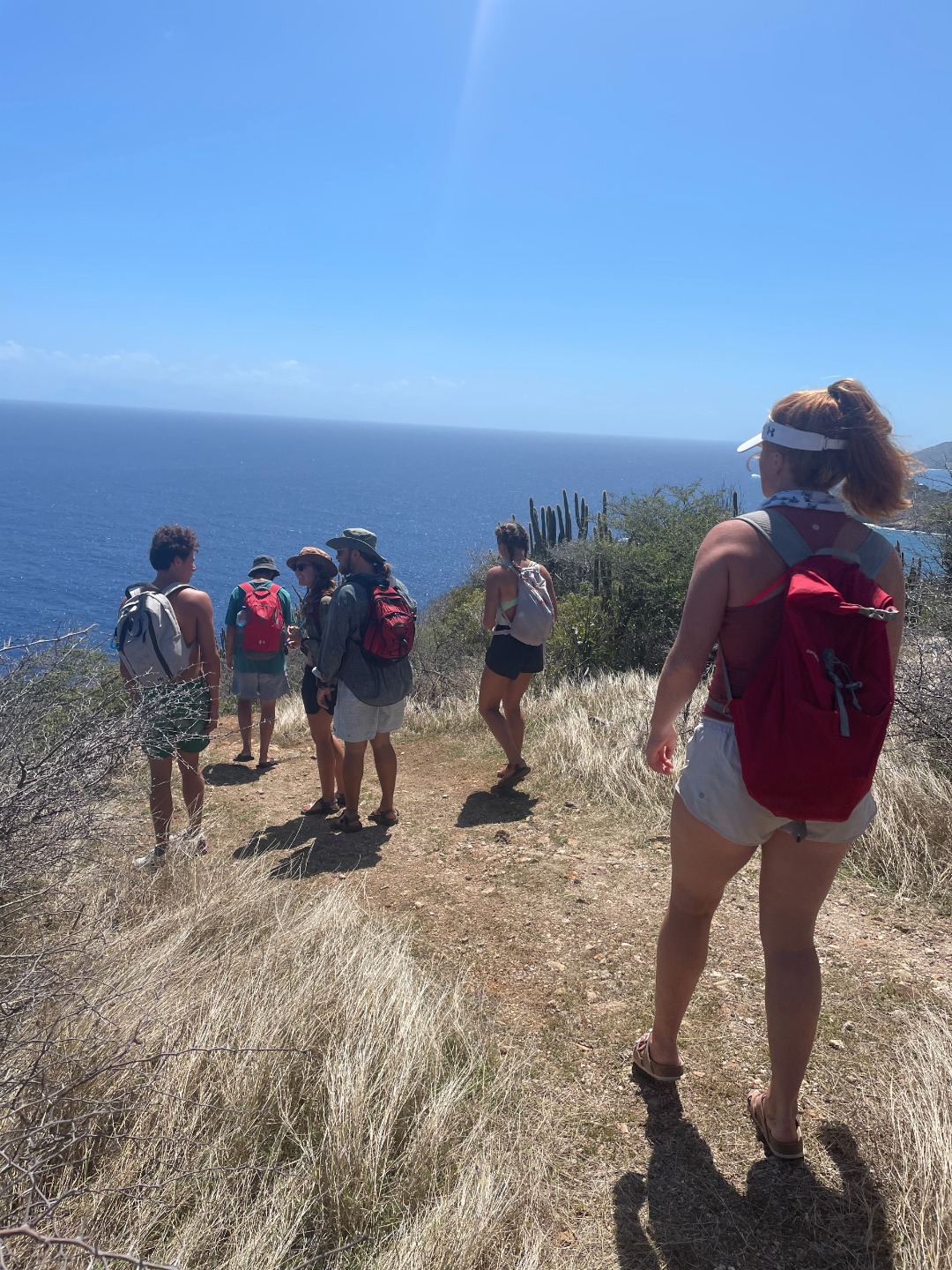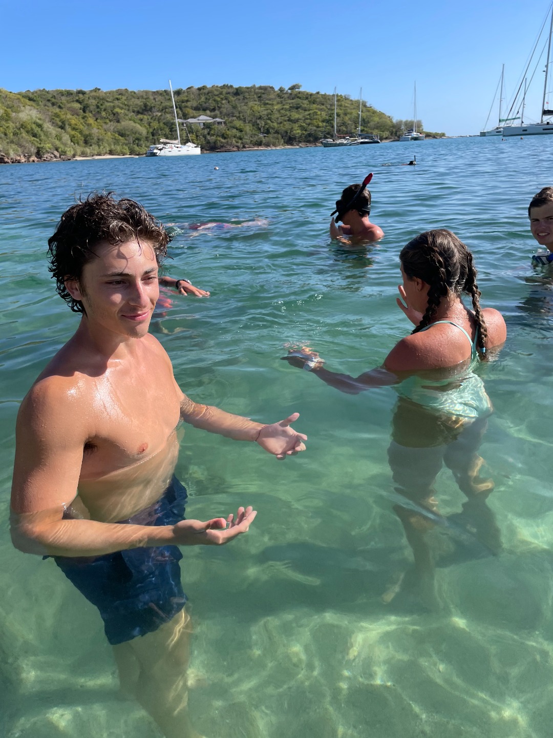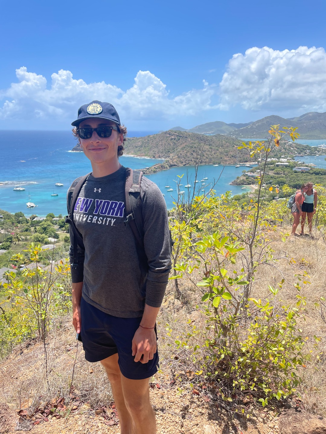 This morning was our final voyage on the S/Y Ocean Star. Although it was a ten-minute ride to our slip, it was still a bittersweet day. The trip is quickly coming to a close, and leaving Falmouth harbor is when reality sets in. Breakfast came out on time as per usual this morning. Keaton, Katie, and Addisen put together some beautiful coffee cakes. Quickly after eating, we packed up our lunches and got ready to take on today’s hike. `The plan for today was to hike Shirley Heights here in Antigua. Anchors were hoisted for the final time, and we made our way to the slipway. We were greeted by some familiar faces as Steve docked like a surgeon, I only award that title to my father, but Steve’s performance today took the cake. We made our way off the boat and walked up some backroads until we found a trail, not the trail we were looking for, but it was a trail, so we naturally started trekking. Soon we realized we were on the wrong trail, so we hiked all the way back down and were able to find the right trail up the street. The actual trail was uphill both ways, but we were rewarded with beautiful views of our home island Antigua. We met a cat, named it Beans. Our trail tapered off as we approached some massive cliffs. Climbing down, we found some tide pools, where Henry and I raced sea urchins and snails. Chris tried to catch some fish with his bare hands to no avail. Continuing back up into the bush, we popped out along a familiar beach, the one us new divers got our open water certification at, and also where we all swam together for the first time. We took a relaxing swim, had sand castle wars, and made a massive sand sculpture. Walking back to the dock Max and I talked about pizza; I can’t eat dairy, so max mostly talked about pizza. Dinner came around with pizza; we each shared some funny moments we have had on this trip, and we laughed while enjoying some cookies.
