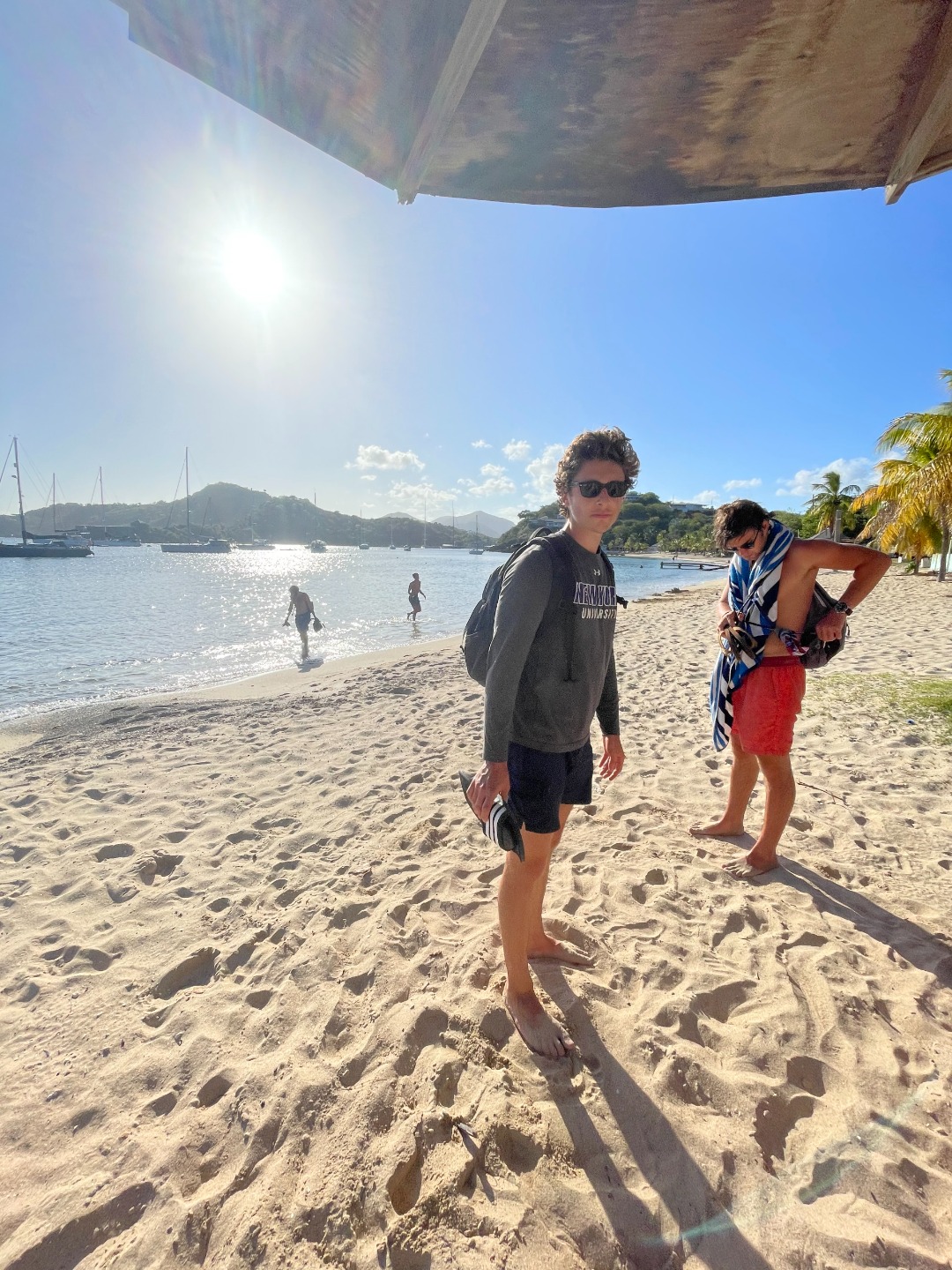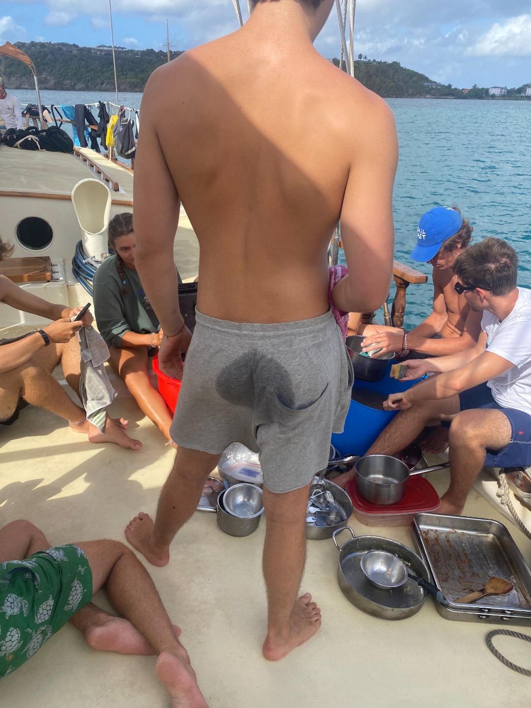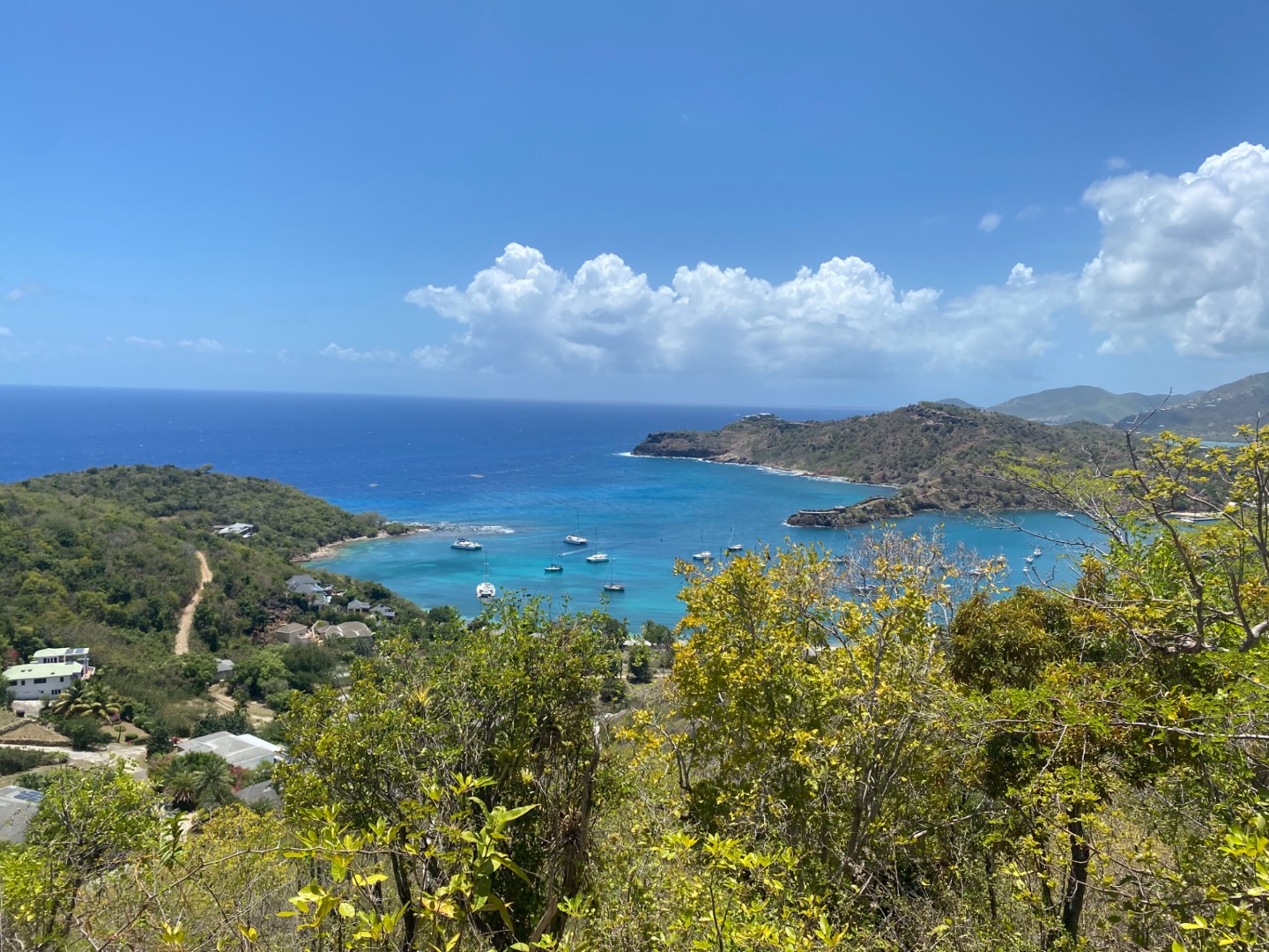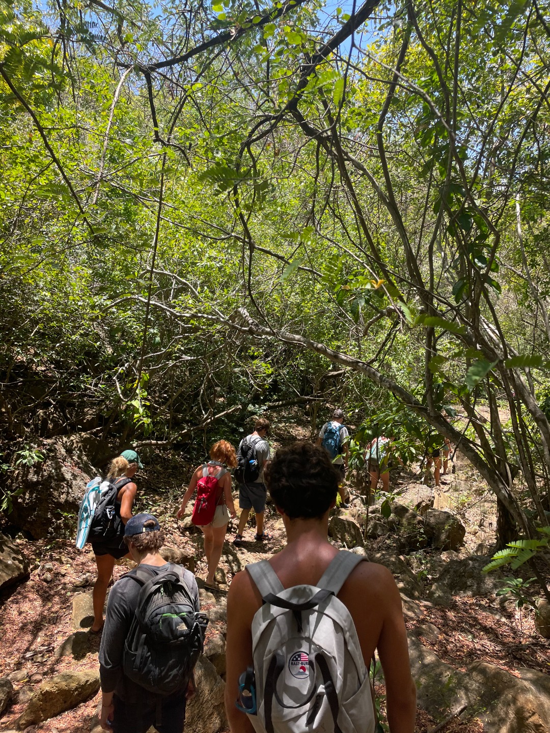 This morning was our final voyage on the S/Y Ocean Star. Although it was a ten-minute ride to our slip, it was still a bittersweet day. The trip is quickly coming to a close, and leaving Falmouth harbor is when reality sets in. Breakfast came out on time as per usual this morning. Keaton, Katie, and Addisen put together some beautiful coffee cakes. Quickly after eating, we packed up our lunches and got ready to take on today’s hike. `The plan for today was to hike Shirley Heights here in Antigua. Anchors were hoisted for the final time, and we made our way to the slipway. We were greeted by some familiar faces as Steve docked like a surgeon, I only award that title to my father, but Steve’s performance today took the cake. We made our way off the boat and walked up some backroads until we found a trail, not the trail we were looking for, but it was a trail, so we naturally started trekking. Soon we realized we were on the wrong trail, so we hiked all the way back down and were able to find the right trail up the street. The actual trail was uphill both ways, but we were rewarded with beautiful views of our home island Antigua. We met a cat, named it Beans. Our trail tapered off as we approached some massive cliffs. Climbing down, we found some tide pools, where Henry and I raced sea urchins and snails. Chris tried to catch some fish with his bare hands to no avail. Continuing back up into the bush, we popped out along a familiar beach, the one us new divers got our open water certification at, and also where we all swam together for the first time. We took a relaxing swim, had sand castle wars, and made a massive sand sculpture. Walking back to the dock Max and I talked about pizza; I can’t eat dairy, so max mostly talked about pizza. Dinner came around with pizza; we each shared some funny moments we have had on this trip, and we laughed while enjoying some cookies.