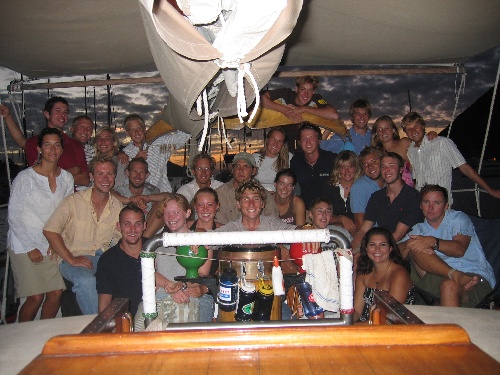 After breakfast, we departed from Great Harbor Peter to get back to West End, where we started 80 days ago. On the way, everyone packed, and we started clearing and cleaning Near Enough. After we arrived on the dock, we continued cleaning Near Enough and gave a hand on Ocean Star. Everyone worked hard, and by 3 p.m., we were completely done, and everyone was free to stroll around West End, enjoy freshwater showers, and do some last-minute shopping. Both boats gathered in the cockpit of Ocean Star for a group squeeze, after which we had a lovely dinner and night out at Pisces.