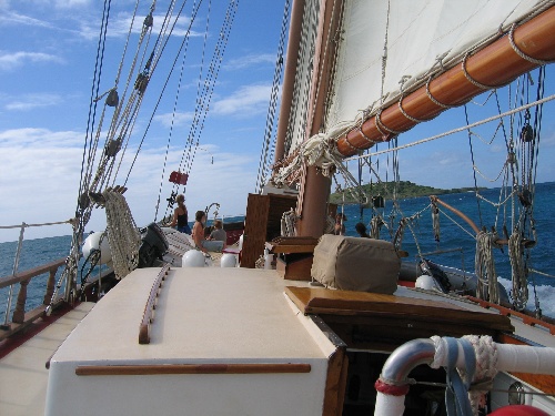 Sadly, we had to say goodbye to Green Island and continue pressing on to discover more of the Caribbean. Our passage took us back to English Harbour to refuel, where we spent the rest of the day. At 15:30, we had an OCE class. In the meantime, all the shipmates studied hard for their geology quiz, which we all aced – congrats! Afterward, some of us swam to the shore to quickly explore the small beach, where we saw lots of little crabs. Dinner was prepared with extra TLC, with a traditional breakfast for dinner special – breakfast burritos …delightful. Once our bellies were topped off, we made Ocean Star ready for our night passage to St Barth’s. The night was luminously lit by the bright moon, and there were too many shooting stars to count. Watch team 2 experienced the 11-2 a.m. shift with surprisingly calm weather; however, that wasn’t the case for the other watches, who experienced some squalls and rocking conditions. Travis received a shocking smack from a flying fish while at the helm. Watch Team 2 also caught a small tuna, which we had fun trying to figure out how to fillet and gut it.