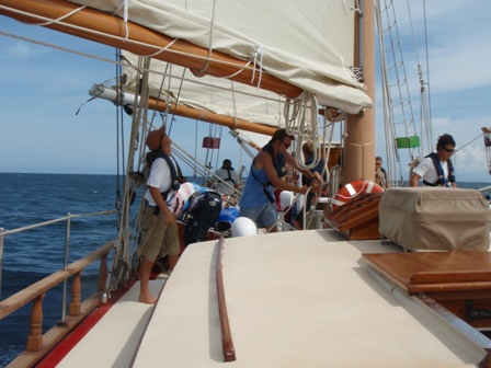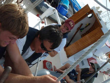 Well, today was AWESOME! We did our normal routine of breakfast, lunch, and dinner. We had a squall last night, which was exciting. After it passed, this morning’s sky was colored a bright orange, shining in between the dark clouds. We had a full day of sailing ahead of us. We practiced several jibes on our sail to Bequia, leaving our hands calloused. Upon arrival, we worked hard in BA. After a fun day of sailing, we made it to Bequia, and now everyone is on deck, excited for a night out. It was sad to leave one of the coolest spots we’ve been to so far (The Tobago Cays), but it is time to get away from the isolated shores and get back to town. Whoo-hoo, Coco-cola, here I come!