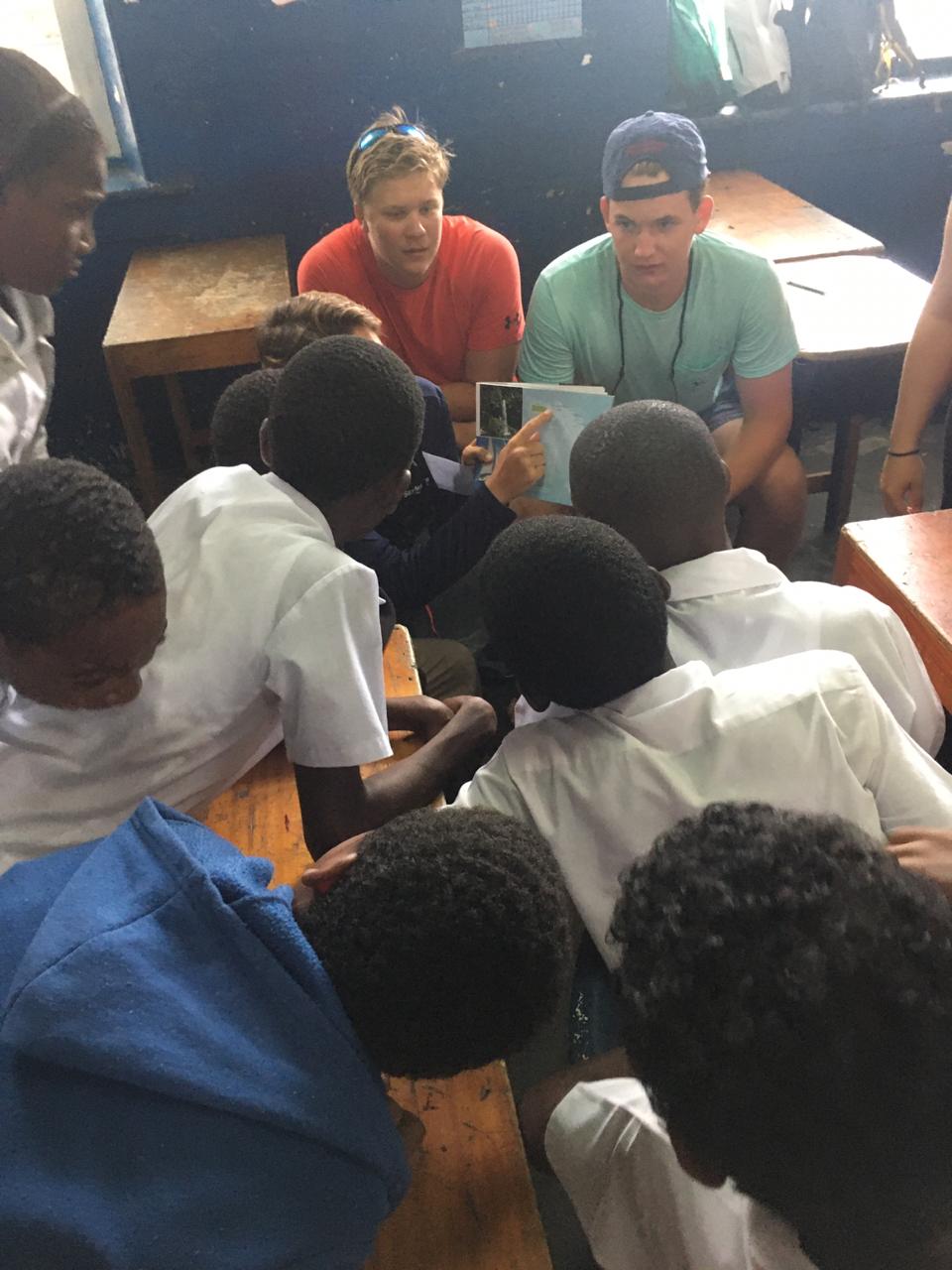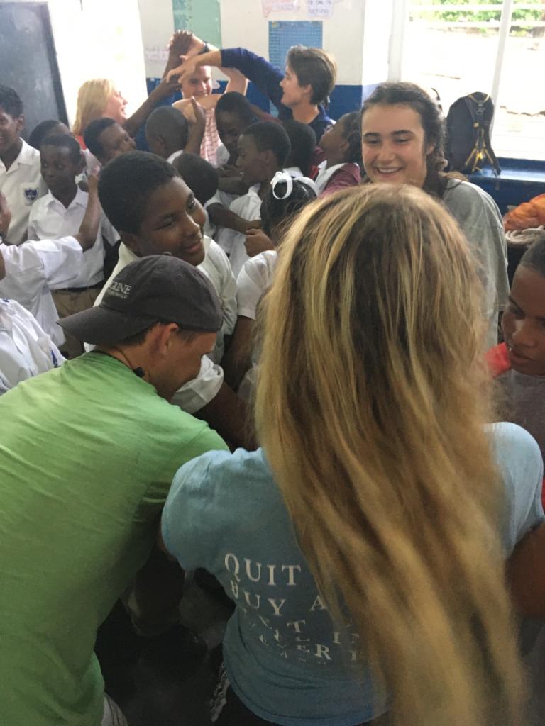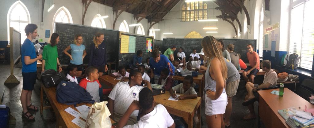 After some shopping and lunch in town, Carolyn and Amanda joined the group for an afternoon at a local school. It turned out that the school was inside a converted church and had only large blackboards to separate each class. Excitement swept the room as the Seamester crew walked in, games were played, including Tug-A-War and jump rope (Brit put on quite the performance, I’m told), stories were shared, and friendships forged as the students learned about our life aboard Ocean Star.