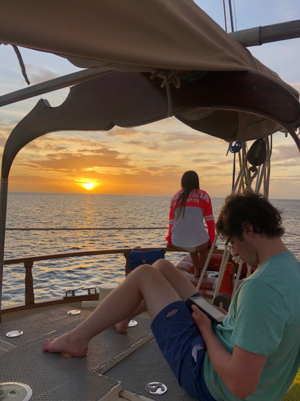 Day 20 saw us wave goodbye to our home in Prickly Bay and celebrate Joseph’s 22nd birthday as we headed west to St. George’s, the picturesque capital of Grenada. Our arrival signaled the start of some free time ashore, and the student crew set off to explore the island capital. Before we even left Ocean Star, Matt G struck a deal with some local fishermen, and some fresh tuna was soon on its way to the fridge for dinner.