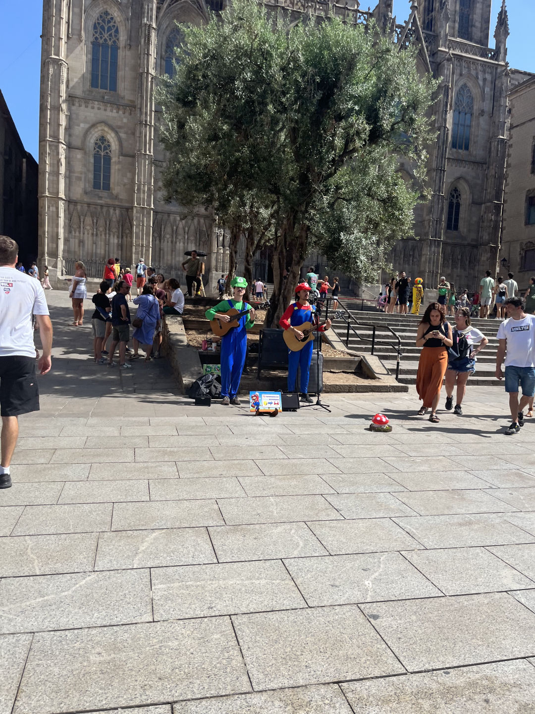 See some graffiti you like? Go check it out (and take a picture while you’re at it). Smell good food? Go for it. Strike up a conversation with a stranger, and they mention something interesting? If it’s within your time budget, find or do or see that thing. I firmly believe sidequest time is the way to experience the best of walkable cities. So, during these two hours, Alex and I went full sidequest mode. And believe me, we wandered. Saw hilarious street performers and incredible architecture (including the Gothic church in the center of the city quarter), ate a great baguette from a local bakery, and went shade hunting.