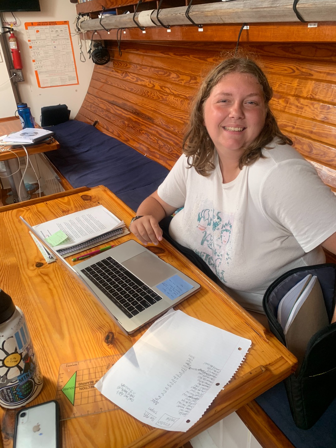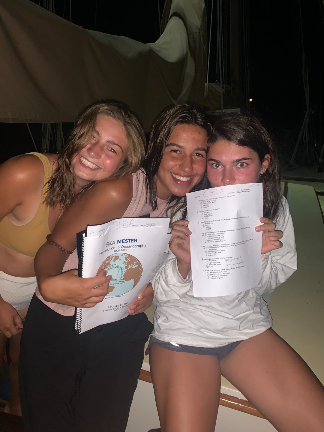 By 6 am most of us were up on deck, sporting our one “cold” outfit of a sweatshirt or sweatpants, cramming for our last marine bio finial. At 6:50, we took a coffee break to fuel up for the rest of the day. I woke everybody up with the only morning-themed songs like- Waking Up Easy by Lime Cordiale, Easy like Sunday Morning by Maroon 5, Good Morning by Grouplove, Wake Me by the Bleaches, among others. Breakfast was the classic granola and yogurt but with a Mediterranean twist (greek yogurt). After breakfast, we took our last marine bio exam and then broke into dive groups. The first dive group went out to the dive site to collect data for their research projects, laying transects or playing with Christmas tree worms. While they were gone, the people left on the boat, swam ashore to a little beach, studied for the oceanography final, or, my personal favorite, napped.