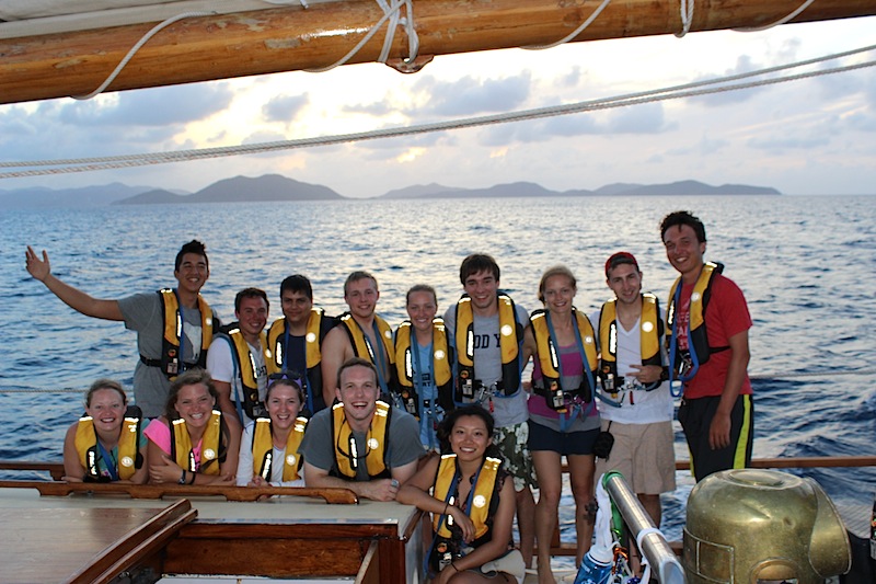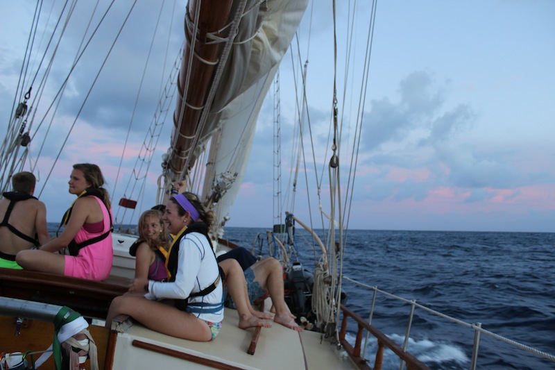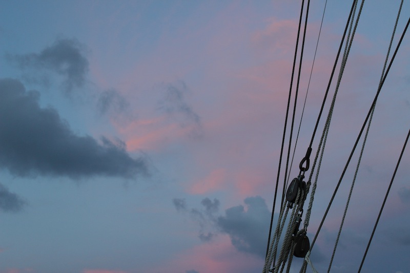 Today was definitely not a bad day of work. We had an early wake-up this morning, but I heard no complaints because they were being woken up to go diving! Everyone got to get in the water and explore instead of just working on their open water diver certification skills. I got to relax, read a book, and sat on the surface for the divers. As soon as they surfaced, a few of them would quickly rifle off descriptions of fish they saw so that I could ID them (which reminds me I have to brush up on my Caribbean reef fish identifications!) Tor and Tina poured some love into breakfast and cooked us some wonderful heart-shaped pancakes. After a quick clean-up, we motored around the coast of Virgin Gorda to Spanish Town. Everyone was anxious for a little shore time to pick up their favorite snacks and some internet to send some emails home before our long voyage. When everyone was back on board, we prepped the boat for passage and battened down the hatches. Followed by a quick dinner, and then it was off to Nevis! A 125-mile journey lies ahead. We will see how the crew fares for their first time facing the open seas, where even the toughest of men can be brought to their knees. I am incredibly excited to get back out to the open ocean for a night passage as a staff member this time around. Let’s hope the wind and the waves stay favorable!