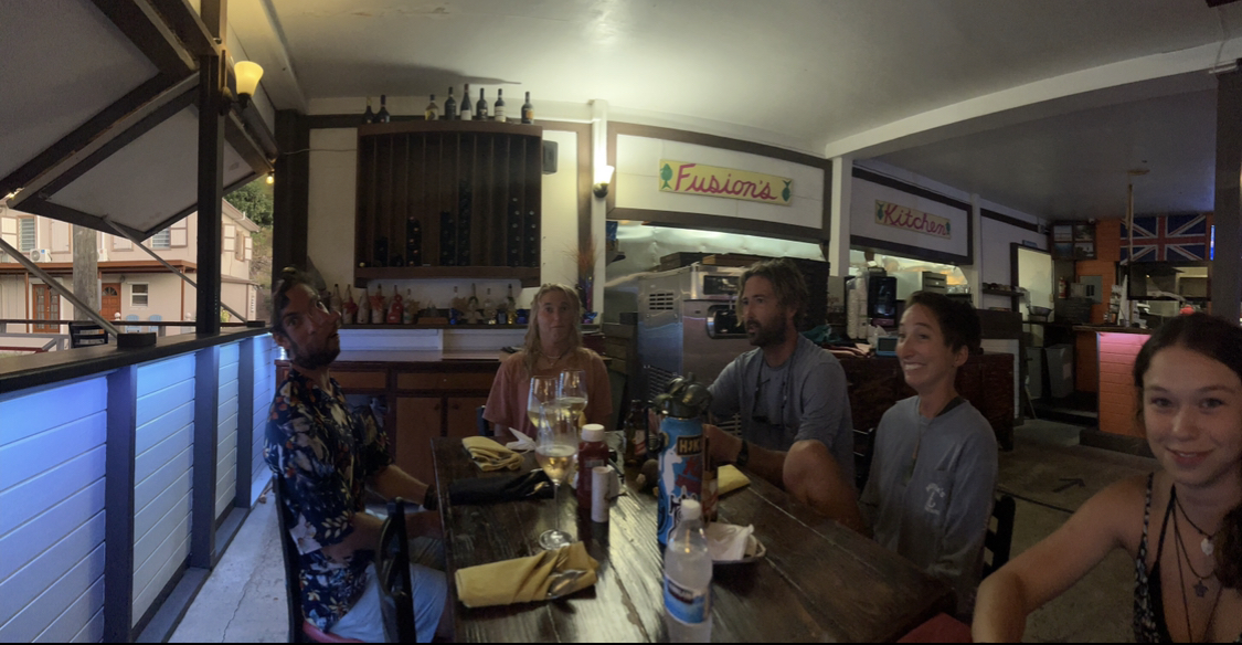We met up for lunch, and then the two groups swapped. Video watchers went on their own dives, and the morning divers watched their Rescue videos. Once everyone was done with their respective activities, we picked up anchor and moved over to Sopers Hole, West End. We anchored there, and everyone had a rapid shower in order to get onshore in time for our night out at Omar’s Fusion, a GXG favorite. The food was fantastic, and everyone had a lovely time. Once we were able to return back to the boat later that evening, almost everyone was exhausted from our activity-filled day and fell soundly asleep, excited for another great day tomorrow!