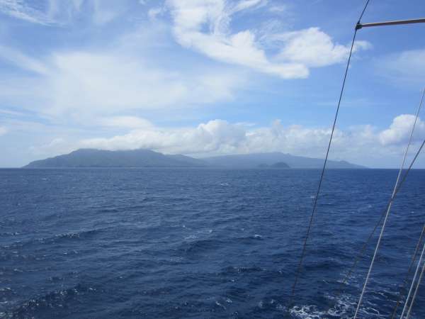 We said bye to Dominica this morning after spending a fun-filled 4 days there. I think everyone aboard now has a new favorite island to return to someday. The squally weather that missed us yesterday decided to pay us a visit during sail raises this morning, making the process more difficult yet fun and good practice for handling sails under less-than-perfect conditions. The dumping rain soon passed, and we were on our way to new adventures in France-land at Les Saintes. It was an amazing sail for Ocean Star on a comfortable beam to broad reach, making a solid 8 knots. This was the crew’s first passage with good wind for sailing, and we made the most of it as we tacked our way through the Les Saintes islands while avoiding the abundant fish traps that litter the water. Once we navigated our way through the fish traps, we arrived at Pain de Sucre, where we secured ourselves stern to the shore in preparation for an awesome night dive tomorrow night. After a solid day of sailing, the crew was more than eager to jump in the warm water for some snorkeling and flipping fun. We end our day with a beautiful sunset, attempting to see the ever-elusive ‘green flash’ and an MTE sailing class in the evening.