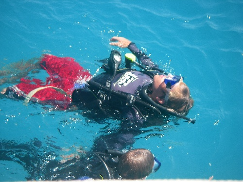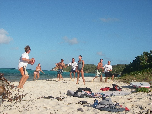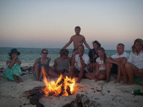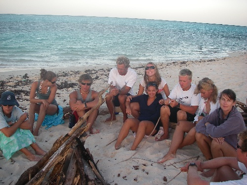 The crew of Ocean Star had a fun-filled day on Green Island in Antigua. After breakfast, we had rescue diver instruction. For lunch, we had sandwiches and relaxed in the sun for the rest of the afternoon. At around 4, the crew loaded up and dinghied to shore for our beach BBQ. On the beach, we had a competitive touch football match followed by a dinner of hamburgers and hotdogs. We fired up the bonfire, and everyone watched the sun go down while roasting marshmallows and making s’mores. Everyone had a great time.