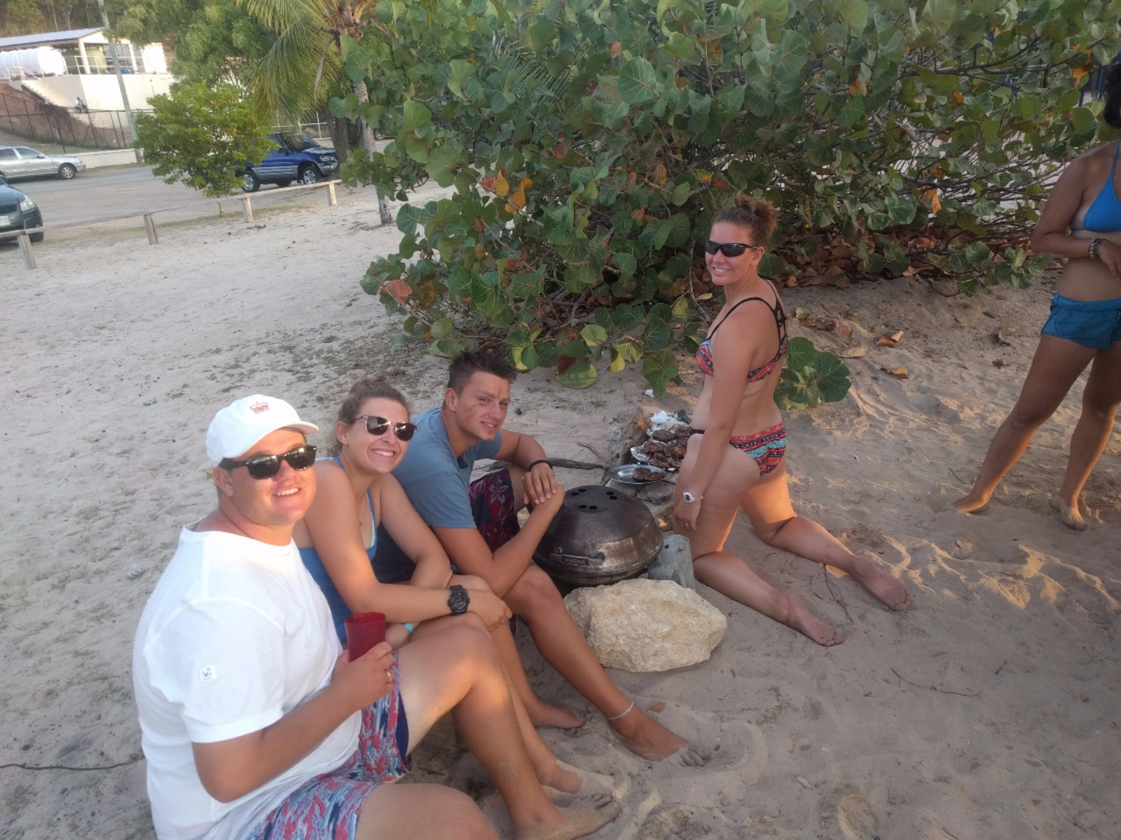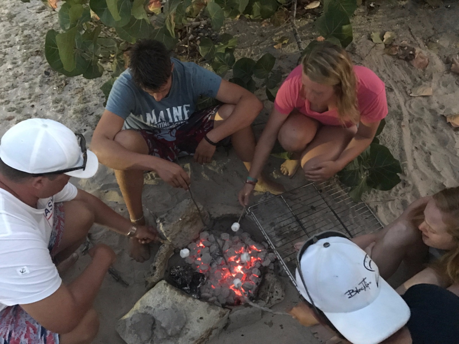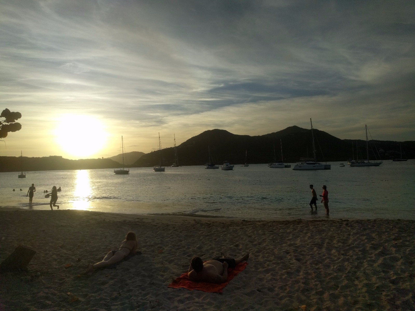 Today started off early with some delicate boat maneuvering as we made our way out of English Harbor. The harbor has been relatively quiet this weekend because many of the superyachts that usually tie up here were off at The Bucket Regatta in St. Barthelemy. With the conclusion of The Bucket yesterday, the yachts came pouring into the harbor today by the dozen. Luckily for us, we pulled out of English Harbor before it became too busy. Getting off the dock was a breeze despite having two anchors down. The students impressed the onlooking professional mariners from vessels Penelope, Rainbow, and Tulip by quickly and efficiently hoisting dinghies and anchors out of the water and into the vessels. Everyone is in the groove right now, and we are firing on all cylinders like a seasoned crew should be. We made our way over to Falmouth Harbor, dropped anchor, and set up for a day of activities. The students hurried themselves to shore and soaked up those last few moments of snack gathering and internet usage. We all met up on Pigeon Beach around 4:00 pm and began a beach BBQ. Discs were tossed, food was eaten, and all-around merriment abounded. After the sun had set and the BBQ had been cleaned up, everyone headed back to Ocean Star and continued to watch the parade of superyachts roll into the harbor. It was a great day today, and tomorrow we make our way to Barbuda for some more adventure.