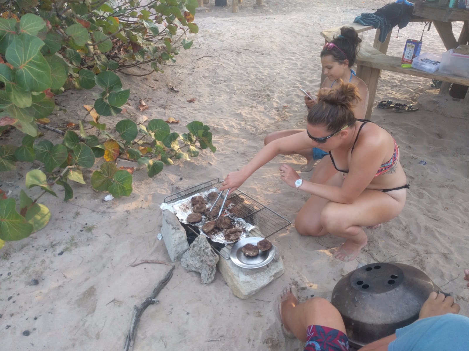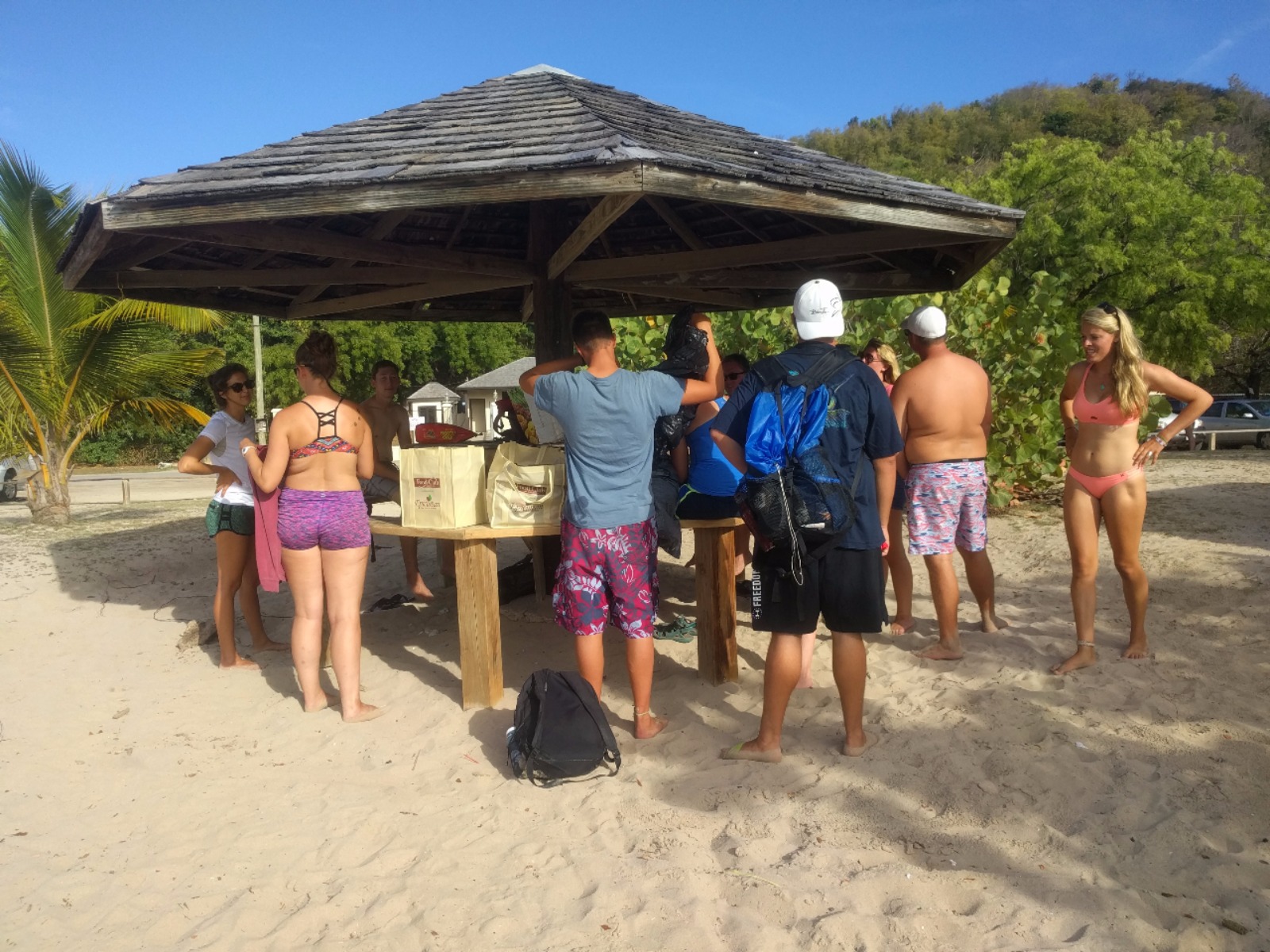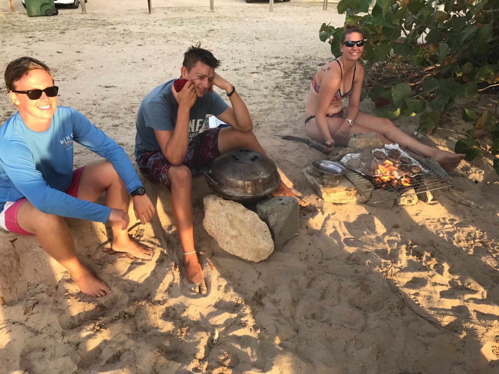 Today started off early with some delicate boat maneuvering as we made our way out of English Harbor. The harbor has been relatively quiet this weekend because many of the superyachts that usually tie up here were off at The Bucket Regatta in St. Barthelemy. With the conclusion of The Bucket yesterday, the yachts came pouring into the harbor today by the dozen. Luckily for us, we pulled out of English Harbor before it became too busy. Getting off the dock was a breeze despite having two anchors down. The students impressed the onlooking professional mariners from vessels Penelope, Rainbow, and Tulip by quickly and efficiently hoisting dinghies and anchors out of the water and into the vessels. Everyone is in the groove right now, and we are firing on all cylinders like a seasoned crew should be. We made our way over to Falmouth Harbor, dropped anchor, and set up for a day of activities. The students hurried themselves to shore and soaked up those last few moments of snack gathering and internet usage. We all met up on Pigeon Beach around 4:00 pm and began a beach BBQ. Discs were tossed, food was eaten, and all-around merriment abounded. After the sun had set and the BBQ had been cleaned up, everyone headed back to Ocean Star and continued to watch the parade of superyachts roll into the harbor. It was a great day today, and tomorrow we make our way to Barbuda for some more adventure.