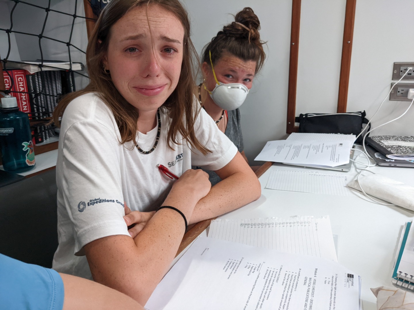 2. Sharp crying from onions being cut while taking her seamanship test