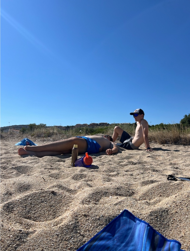 A chicken Alfredo Lunch was served at noon, although Rina had to try twice because a wave hit the boat right as she was sitting down, sending her bowl of pasta flying across the cockpit. Afterwards, everyone began getting ready to head to shore. The dinghies were loaded, and group by group the students took the 15-minute ride from Argo to town. The last dinghy loaded and upon starting, a flying elbow hit emory right in the temple, there were almost tears but axel saved the day with his jokes. All the students made it to shore & began their adventures, although we unfortunately got to shore during the Italians nap time and all wandered aimlessly until the shops opened once again. Scottie, Sienna, and Carli started a gelato trend, with the entire group quickly following suit. Derrick, Sawyer, and Seb got their hands on Italian brainrot trading cards, which were a huge hit among the boys for whatever reason. Brig, Ryan, Carlo, Gabe, and Axel acquired matching Sardinia shirts, which they wore during dinner. Faith got a gorgeous new dress and Avery got a cutesy sun hat. The students had their fair share of Italian sweets, cuisine, and gas station snacks on the island today, as it was our last day to get snacks for our final few days on Argo. Ryan bought an inner tube, and Gabe bought an inflatable crocodile named Jarilla, which were heavily utilized once we made it back to Argo and had our saltwater showers. During which Ryan, Brig, Gabe, and others took turns jumping through the inner tube and onto the crocodile from the bow. Logan, Sawyer, Sebastian, and Charlize spent some of the shower free diving and the regular flippers and divers did their thing, including Avery doing a backflip off of the bow sprit. Showers were followed by arguably the best dinner so far, Shanes Chicken Curry. The students all hoovered it and had a blast cleaning up. That basically brings our august fifth to a close, leaving us with nothing short of an awesome day and even better memories.