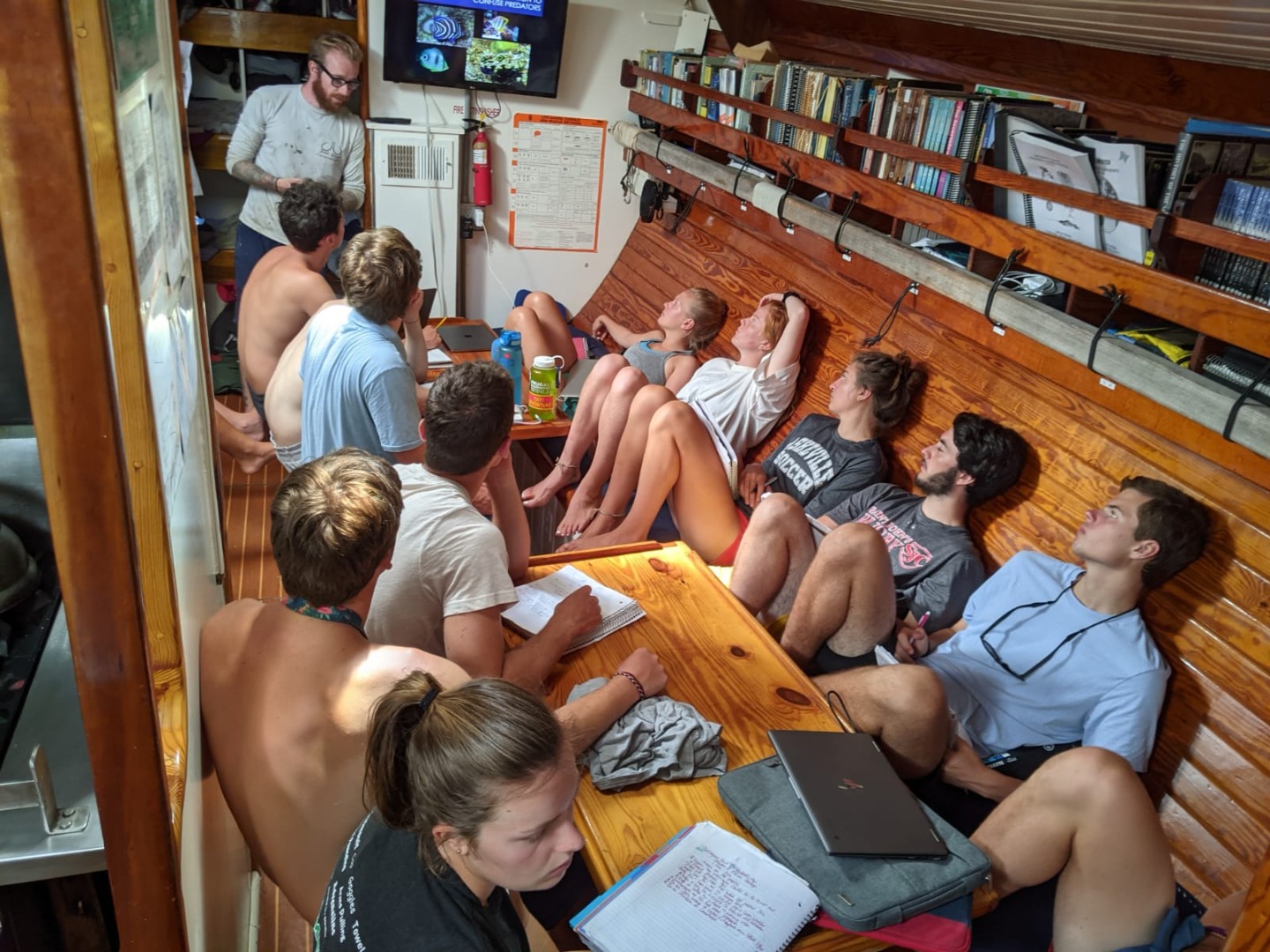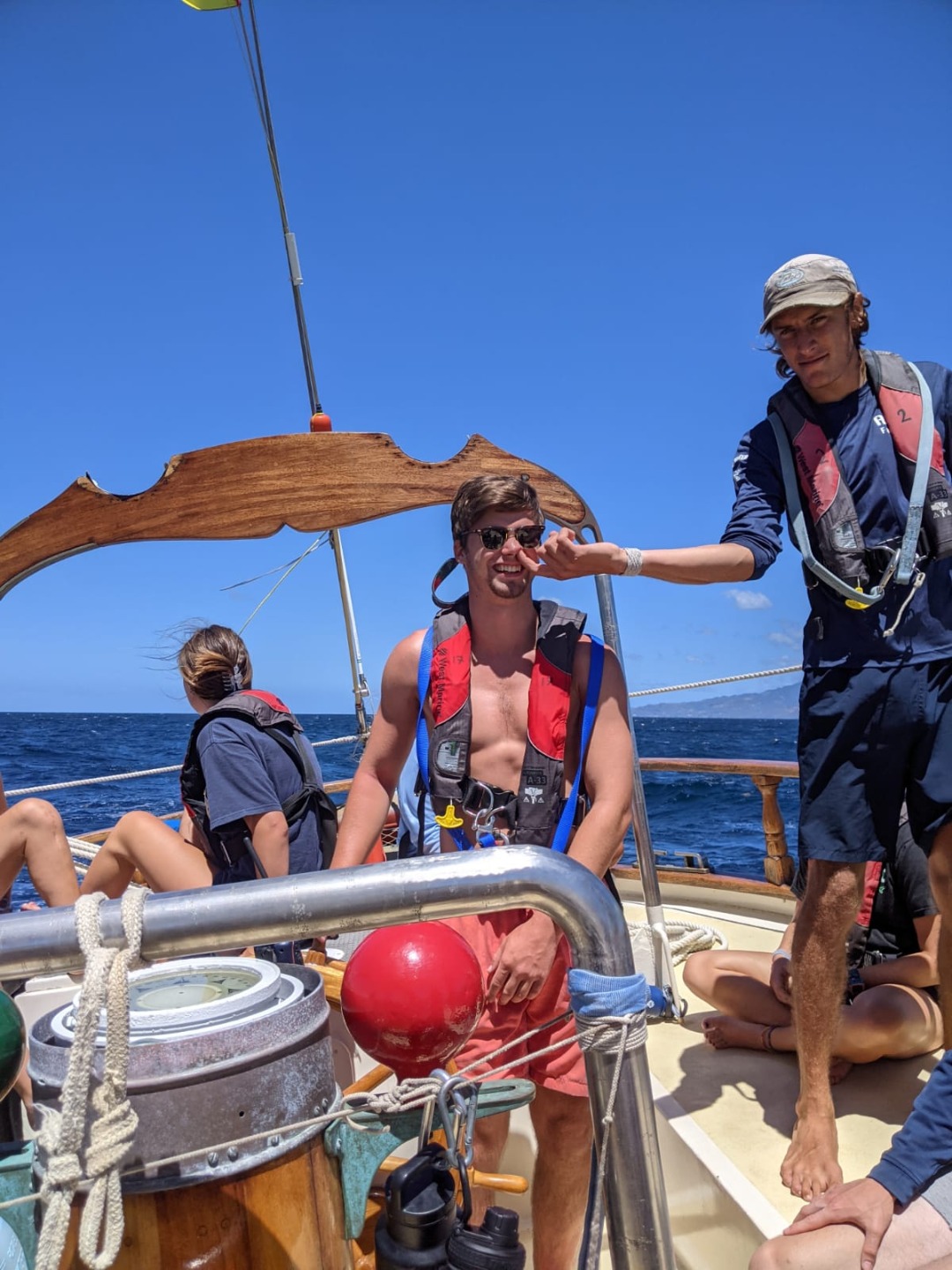 Once we were fueled up for the day, the shipmates dived (figuratively) into a Marine Biology class lead by our Captain, Steve. The class was all about the structure of fish, their different parts and what they do, and how they camouflage themselves in their different environments. After a short break, they got straight back to class, only this time with Brahm for Seamanship. Today’s focus was on the use of VHF (Very High Frequency) radios in the maritime world, their origins, and their importance. Whilst they delve into radio etiquette, Sam, Steve, and I began raising the anchor so we could get underway as soon as they were done.