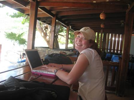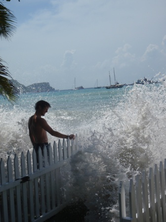 We woke up and had some yogurt with granola and soursop. Then we had two classes; in seamanship, we started to learn some navigational skills, and in marine biology, we finished learning about invertebrates. After class, we had shore time and saw the scrimshaw knives made by Sam McDowell. Max bought one. Casey, Chad, Mac, Chris, and I had a pizza adventure. We went to Mac’s Pizzeria. It was delicious. The waves crashed over the seawall as we ate pizza. Then we came back to the boat for shower time and dinner. Now, we are getting ready for oceanography class.