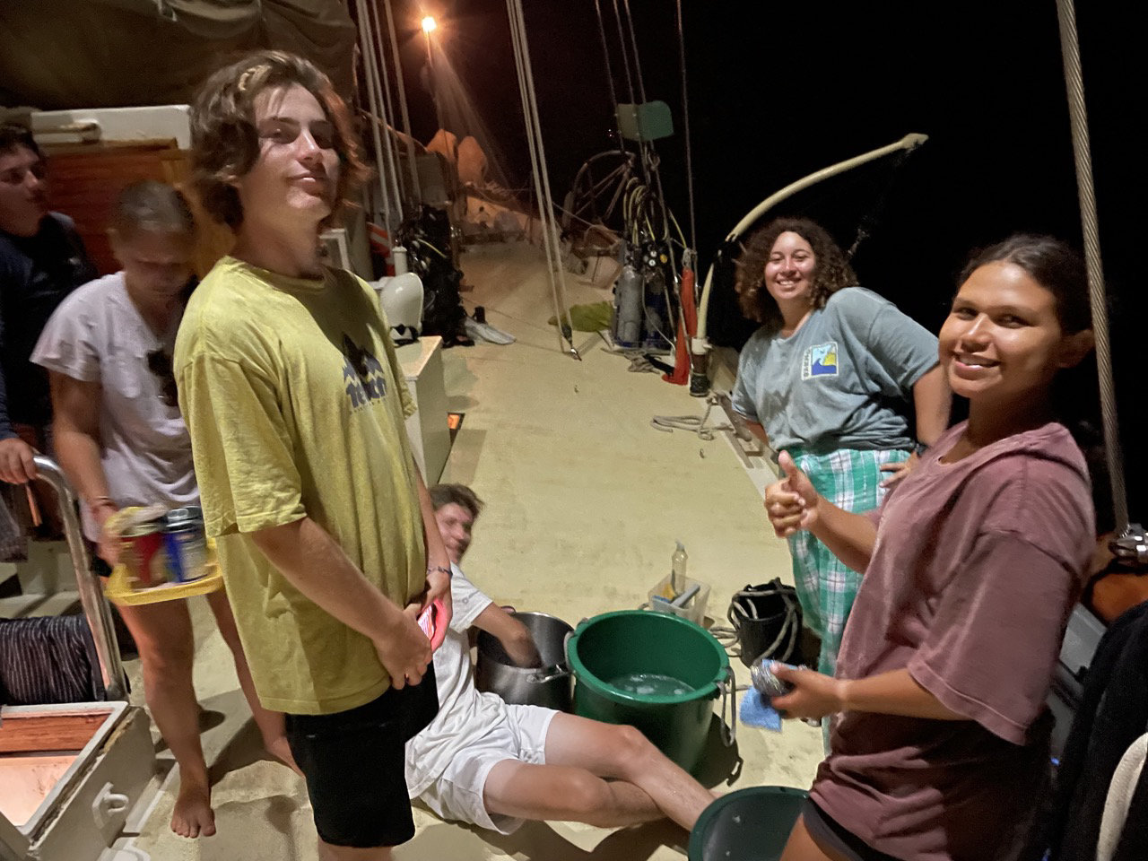The afternoon included an Oceanography quiz, a leadership class led by Ben, a country presentation about the culture and island of St. Lucia, and a marine biology class. To wrap it all up, we feasted upon some chicken, fried tofu, and veggies stir-fried under pink and orange clouds. We answered the squeeze question of what our favorite scent was.