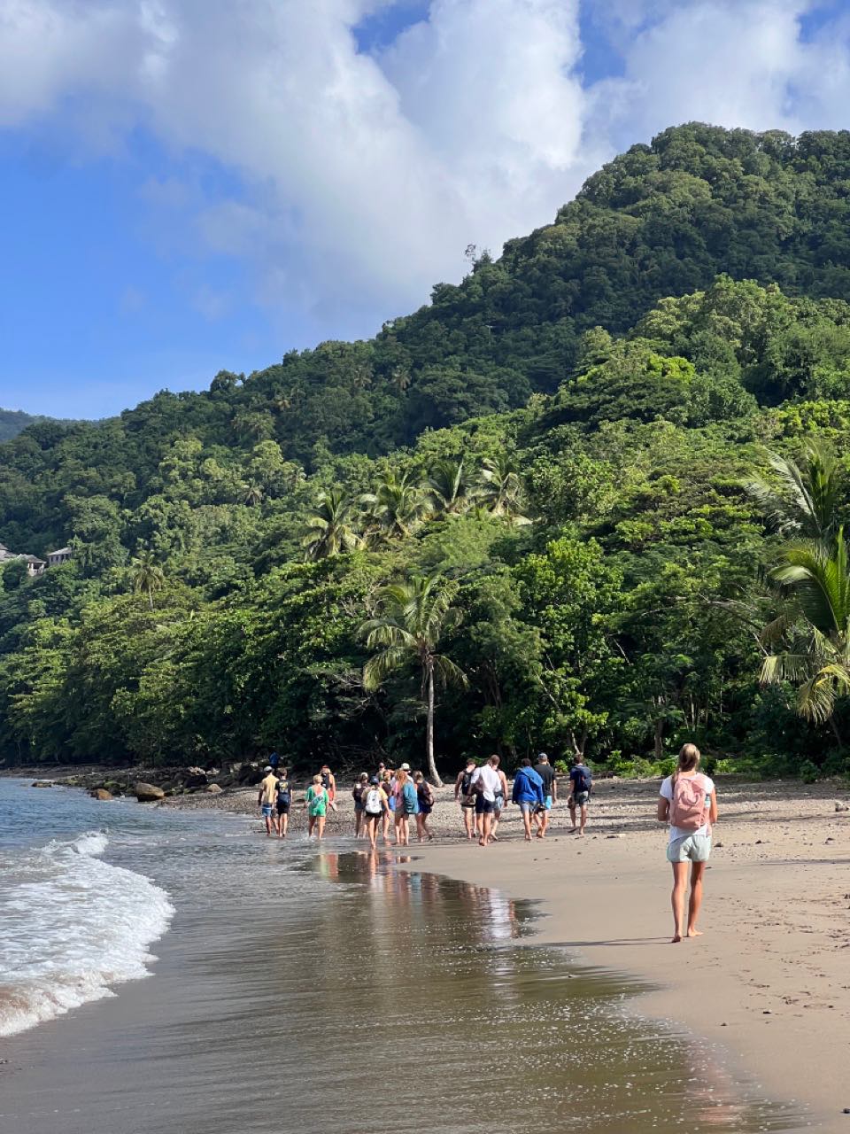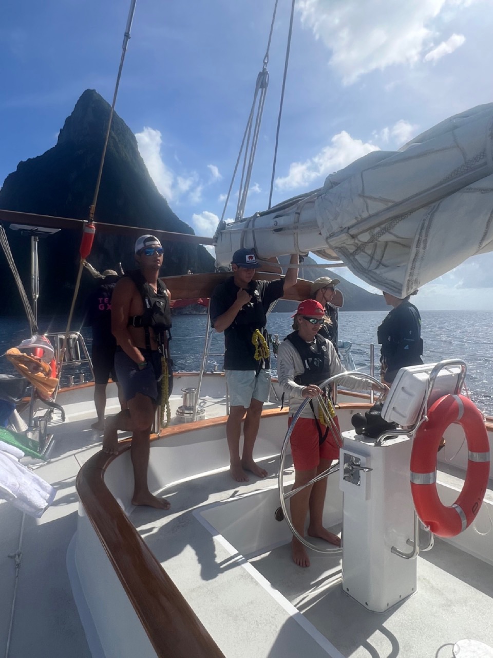 After clean-up, it was time to get ready for the mud baths! None of us really knew what to expect or what exactly we were getting ourselves into, but we were all pretty stoked to go see some of St. Lucia on land. Around 9 am, we all hopped into the dinghy (shout out to Smash for the dinghy runs) and made our way over to the beach, where we were moored off. Yal,l this cove that we were moored in is freaking beautiful. Probably one of the best Ive seen. Any who back to the day.