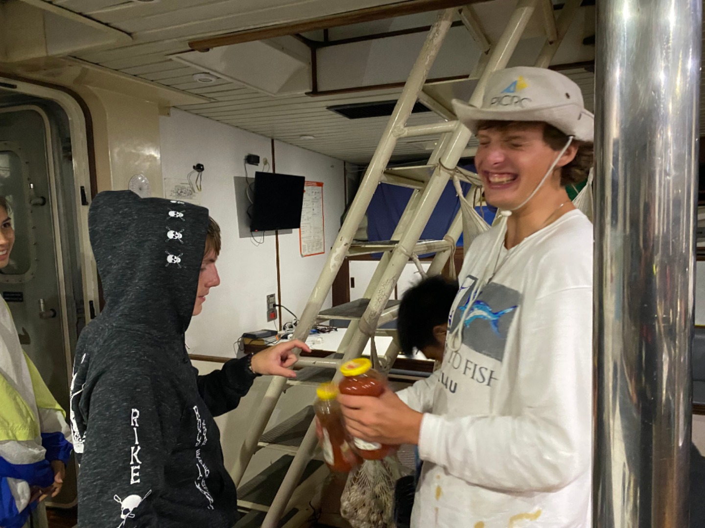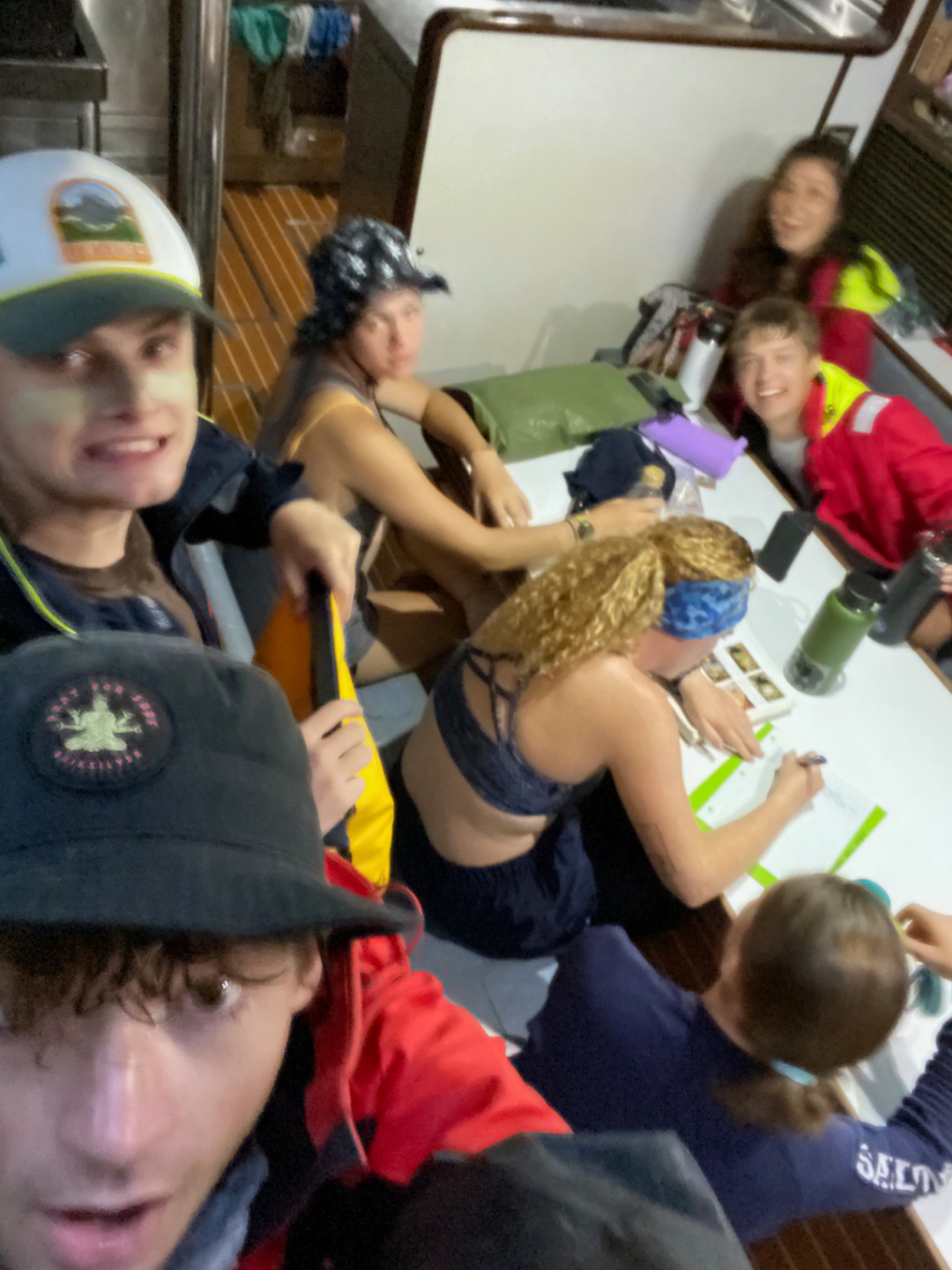I kicked off the day by waking up the rest of the crew with some pretty rad music, not everyone enjoyed it, but I thought it was hilarious. After wake up, we ate breakfast and packed our lunches in some pretty extreme rain conditions. Once we finished breakfast, the crew once again split into three different groups for tours around Palau. I was placed in the group that went diving today. Due to the weather, my group and the group that was going to tour the Rock Islands had to wait on Argo a little while longer, but we did not let that drag us down as we took that extra time and put it towards listening to music in the galley and doing some schoolwork. About an hour later, we were finally picked up by our friends from Sam’s tours, and we went off to our first dive site. Our first dive was a rather deep wreck sitting at about 90ft called the Chuyo Maru. The Chuyo Maru was a Japanese cargo ship that was bombed by the united states during WW2. The wreck itself was very big and well preserved. We saw a lot of marine life, including Tomato Clown Fish. Our second dive was at a site called Short Dropoff, where we rode the current along this wall of reef and saw all kinds of life. After dive 2, we ate our lunch back at Sam’s tours HQ. Our final dive was easily one of the most unique dive experiences. We dove into a cavern system called the Chandelier Caves, where we got to hop between air pockets and see all kinds of cool stuff. We returned to Argo afterward, where we enjoyed an amazing taco dinner prepared by chef Bo and a short Seamanship class afterward.