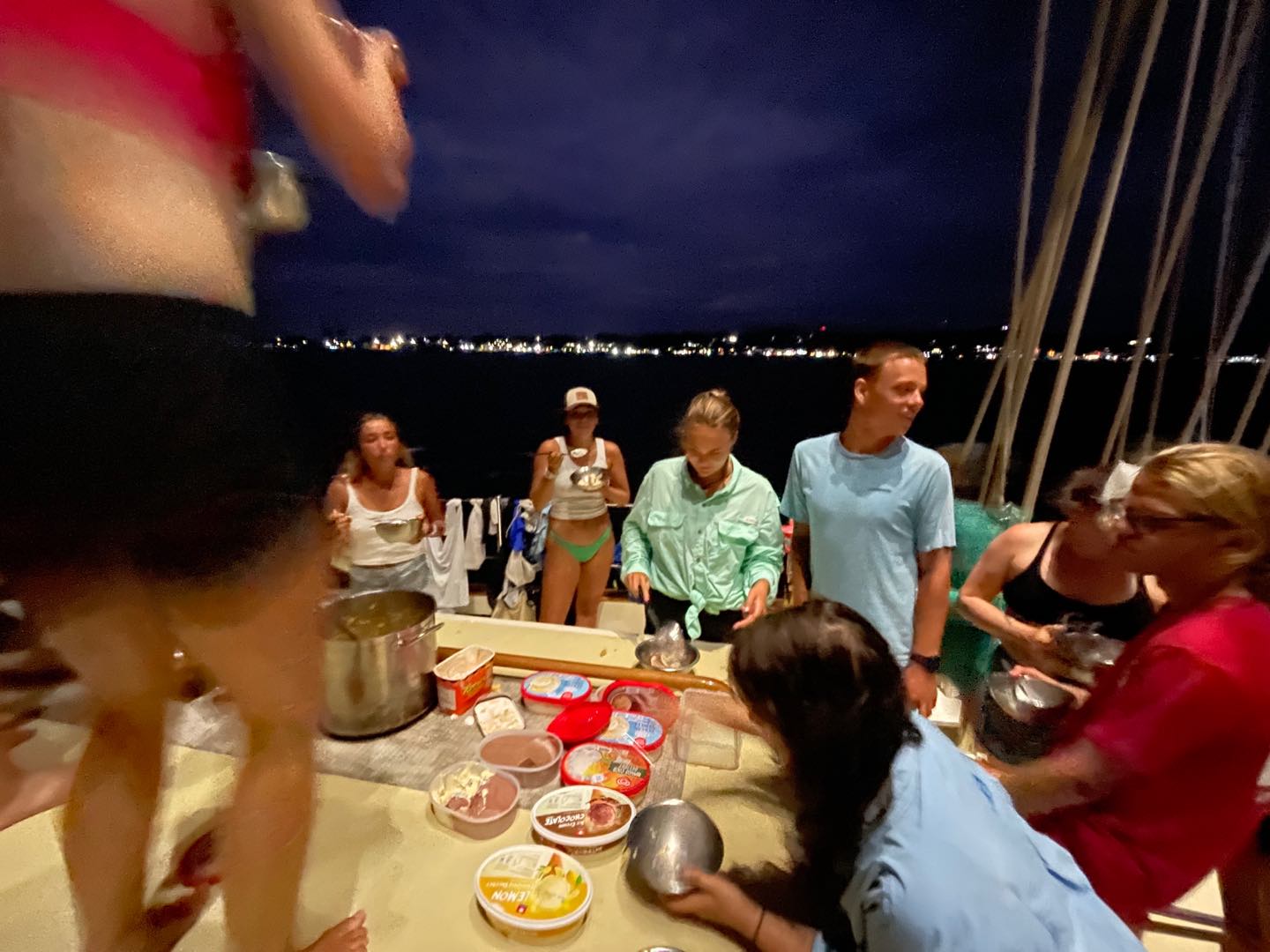 Once back to the boat, BA was in swing. Annabelle, Elanore, and William helped unwrap all the veggies and get them into their sweet lil homes in the salon, while Olivia, Lexy, and Sidney were busy with topsides. Kackie, Lainey, Beck, and Spencer were all giving the deck a nice washdown, and Reagan, Addy, and Kelsey were busy in the galley, cheffing up dinner.