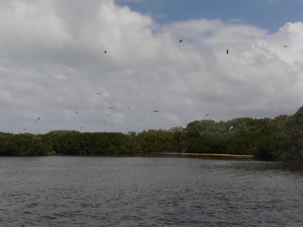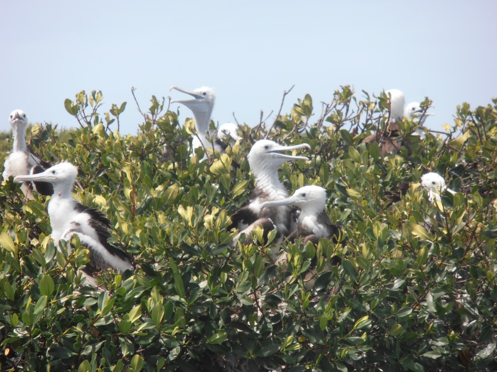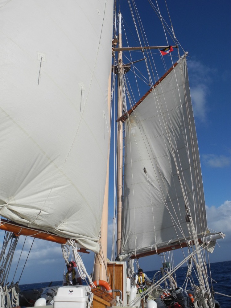 The crew of Ocean Star was woken up to a massive swell rocking us in our anchorage, rousing us from our sleep in the most pleasant of ways. After quickly hoisting the anchor and moving our lovely boat to another, slightly more peaceful side of the island, we left for our frigate tour. We visited Codrington Lagoon, a huge, beautiful lagoon that is the nesting place of countless birds, most noticeably – the magnificent frigate bird. Frigates can live up to about 40 years and can have a wingspan of up to 8 feet but never get any heavier than a chicken. When we returned, the sea had yet to calm down, so we headed off to St. Barths earlier than originally planned. We used our watch teams for the first time in a while, and watch team one was privileged enough to see O-Star sail wing on wing, with our mainsail on a starboard tack while our foresail was simultaneously on a port tack. We flew, and it was magnificent.