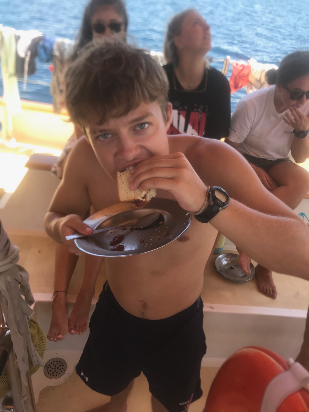 16. JAM eating a jam sandwich.
