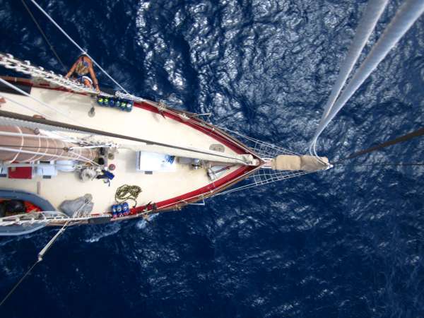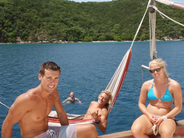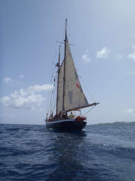 Today, the whole crew woke up with confused faces because we only had one more day, and we had to pack our bags. Everyone was thinking, where did all this time go? Some are excited to leave; some want to stay forever. For me, it’s bittersweet cause I want to come home to my family and girlfriend, but I am going to miss all my friends I made here for the past 40 days. I have wonderful memories with all of the crew, from awesome cliff jumping in Saint Barths with Captain Kev to adventure-filled night passages with MJ and the watch Hawks. Working in sync with one another to raise the sails and cleaning every square inch of Ocean Star after every passage to make her look beautiful. We take lots of pride in this boat, and it is going to be sad leaving her, but we will all meet up soon in the Caribbean for an amazing family reunion cause that’s what we are here on Ocean Star: a huge family. I would also like to add that we snorkeled through some awesome caves today. I’m just saying. But I should really start going down to the saloon for our closing program, which will be awesome because the staff put something really amazing together, like a slide show or something; that’s what I am thinking, but I am not sure because it is a surprise.
