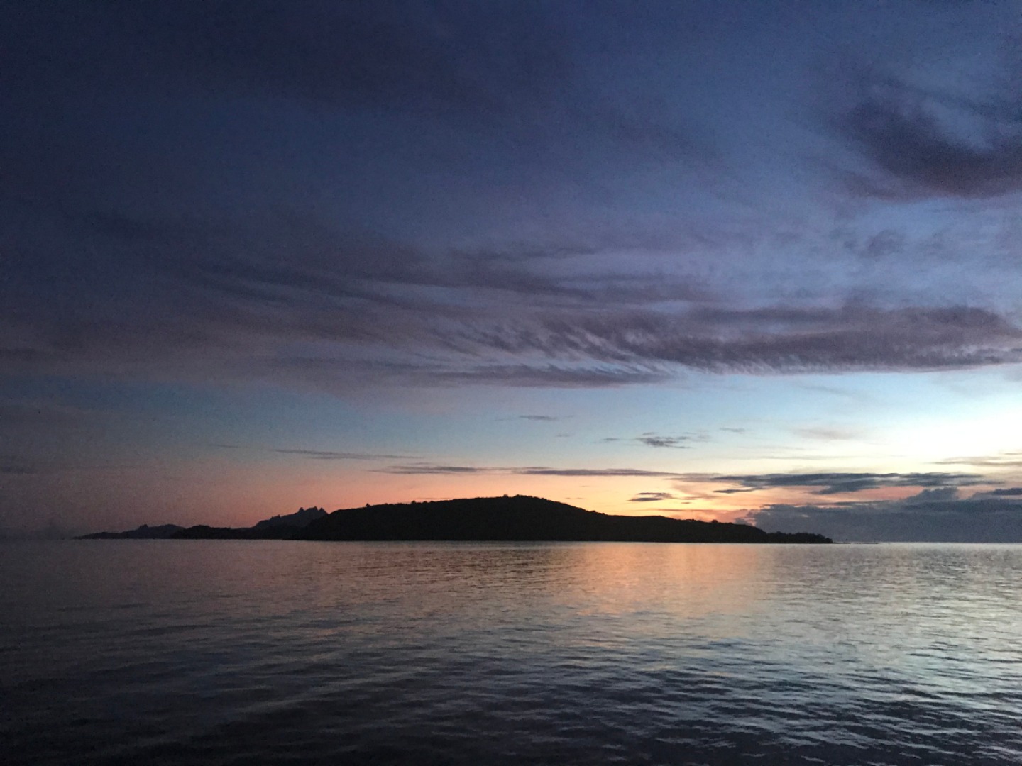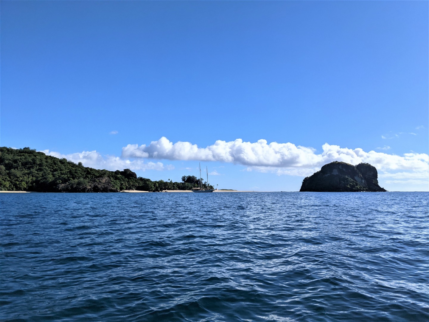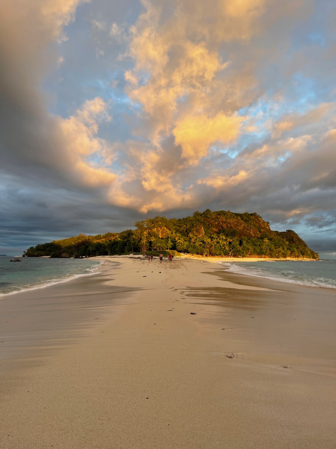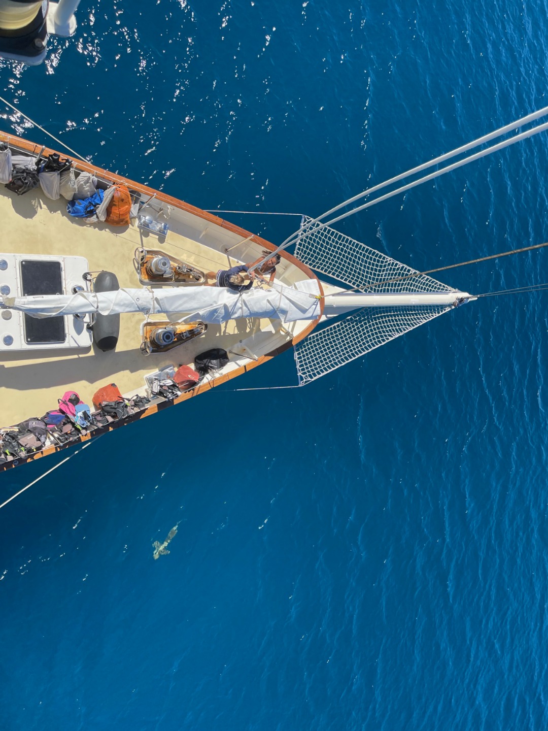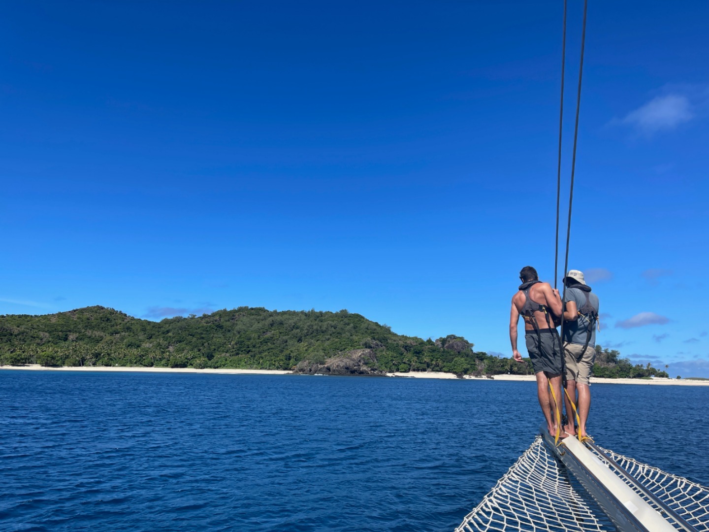 What an amazing day today has been. I didn’t think we would be able to top the Manta Rays that we saw yesterday, BUT… Not only did it start with Kaleo blaring through the hallways, but we got to move Argo to one of the most picturesque anchorages most of us have ever seen. Getting into our spot in the lee of Navadra Island took a lot of coordination on board as usual. We had Riley and Niko out at the tip of the bowsprit, watching out for reefs while Steph stood watch atop the first spreader of the fore mast. Due to Argo’s size, communication relays (Gillian and Elle) are the glue between the lookouts and the helmswoman (in this case, Una). As we made our way in through the labyrinth of coral, I set up a scuba kit to jump in and check out our prospective anchoring spot. I have had this particular job quite a few times, and it’s often pretty exciting (and unnerving) being the first person in the water at a new site. I was happy to find incredible visibility and a sandy bottom, great for seeing and perfect for our anchor. After this recon mission, I surfaced to everyone calmly telling me that there were numerous blacktip reef sharks at the stern which were headed my way. I like sharks and feel incredibly fortunate when I see them, but in this particular moment, I felt very small, slow, and outnumbered. However, as per usual, these sharks were super chilled out and just curious about all of the noise that we had just brought into their cove. Once we were anchored, dinghies were launched, snorkelers were deployed, and a lucky few even got to enjoy the view from the first spreader. We saw nudibranchs, white tips, black tips, turtles, and loads of beautiful coral. Just when we thought the day couldn’t get any better, a few of us spent some time freediving the anchor chain with some friendly black tips. As the afternoon was winding down, everyone headed to the beach for some time to stretch their legs, touch some rocks and sand, look at hermit crabs, and even spot a sea snake! As the sun was setting, we headed back to our floating home and finished the day in our usual cockpit circle.