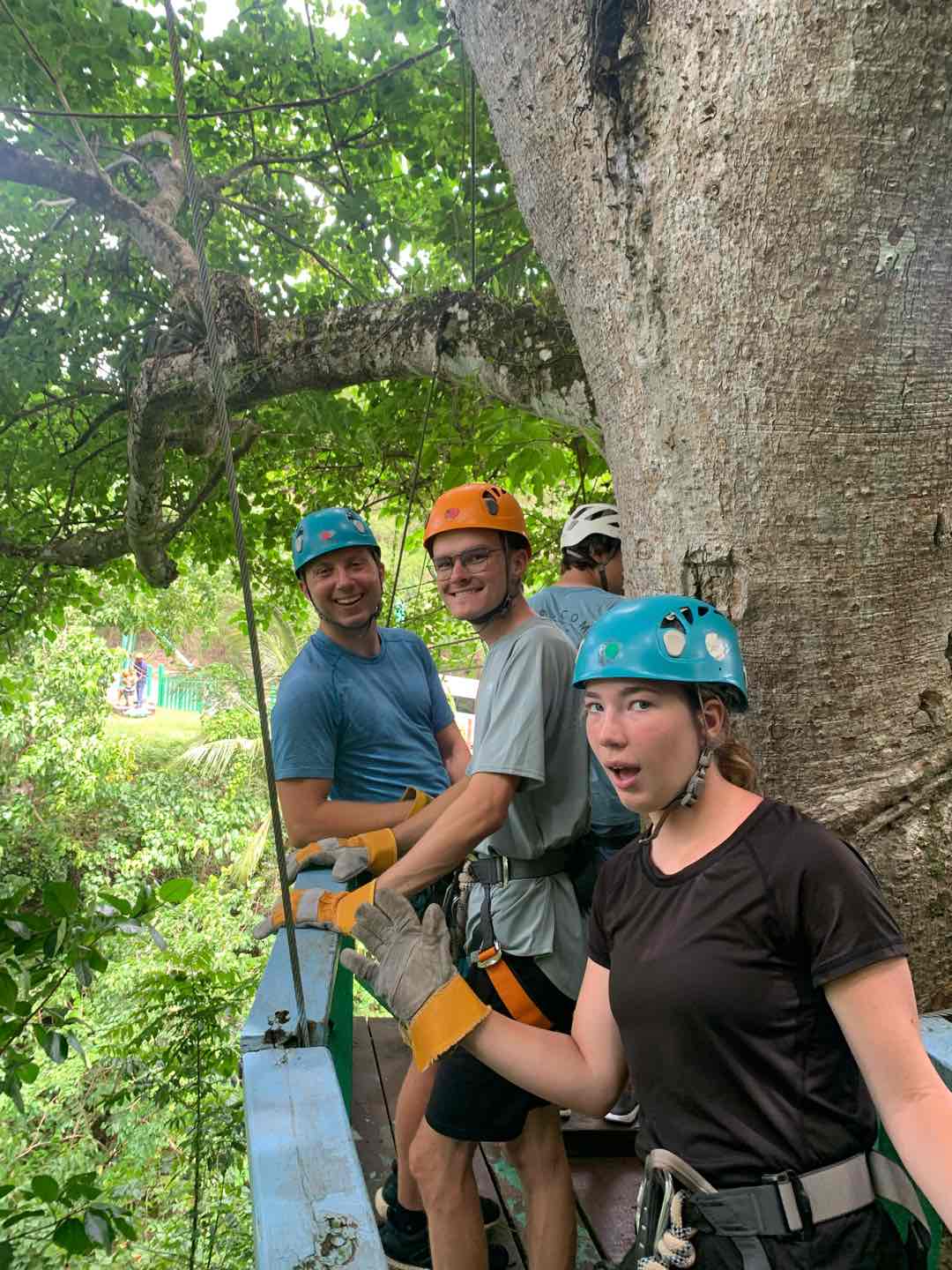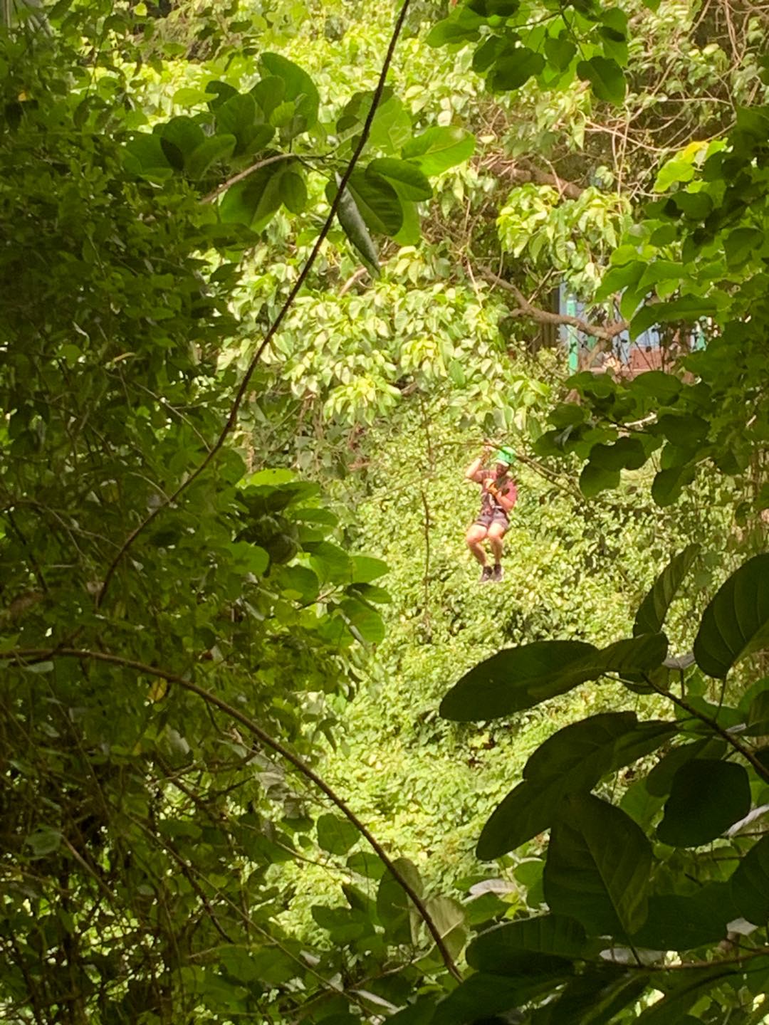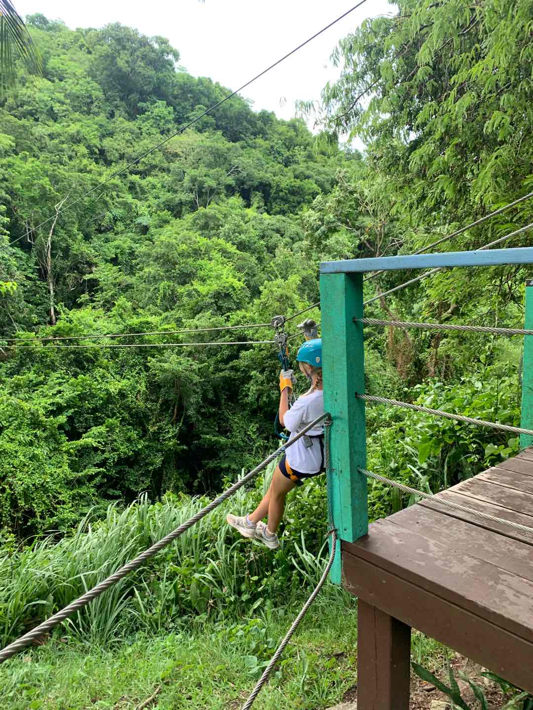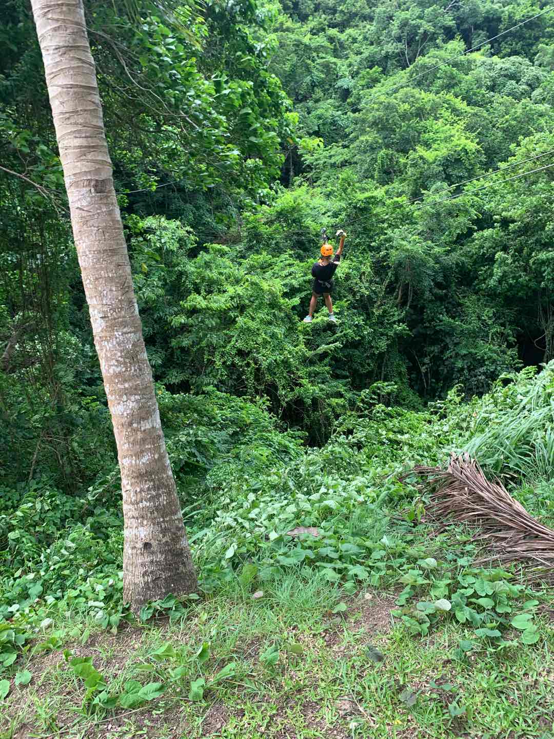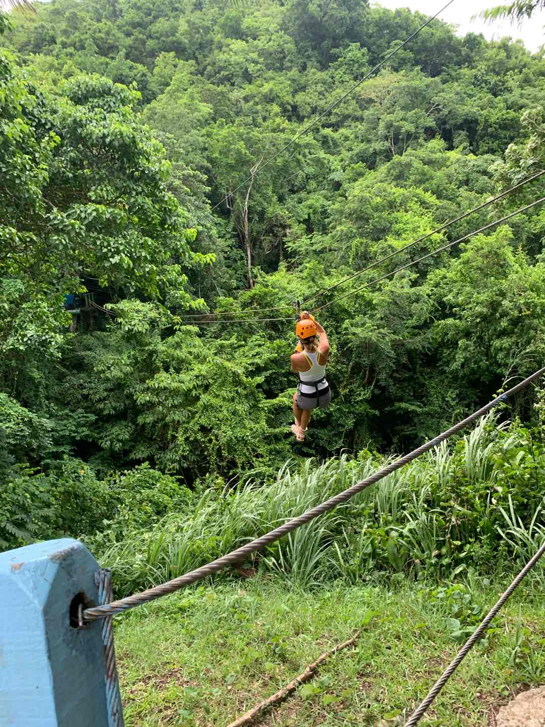 Once wed finished up breakfast, we all cleaned up and got ready to go zipline! We took some cabs on about a twenty-minute drive to the ziplining place, where we met the sweetest cat and dog. They both got very many pets from everyone. Very cute. I miss my dog. If youre reading this and you have a pet, send a picture of them to your student. Anyways. Ziplining was also really awesome! We went on about 12 ziplines that all pulled us through a rainforest at Mach speeds that would make even Tom Cruise from Top Gun pass out. But we still did it, as usual. Next, we hopped into the gift shop of the zipline company, grabbing a few candies, trinkets, and soda. Tip: if youre in the Caribbean, get the grapefruit soda Ting. Very good. Very thirst-quenching.
