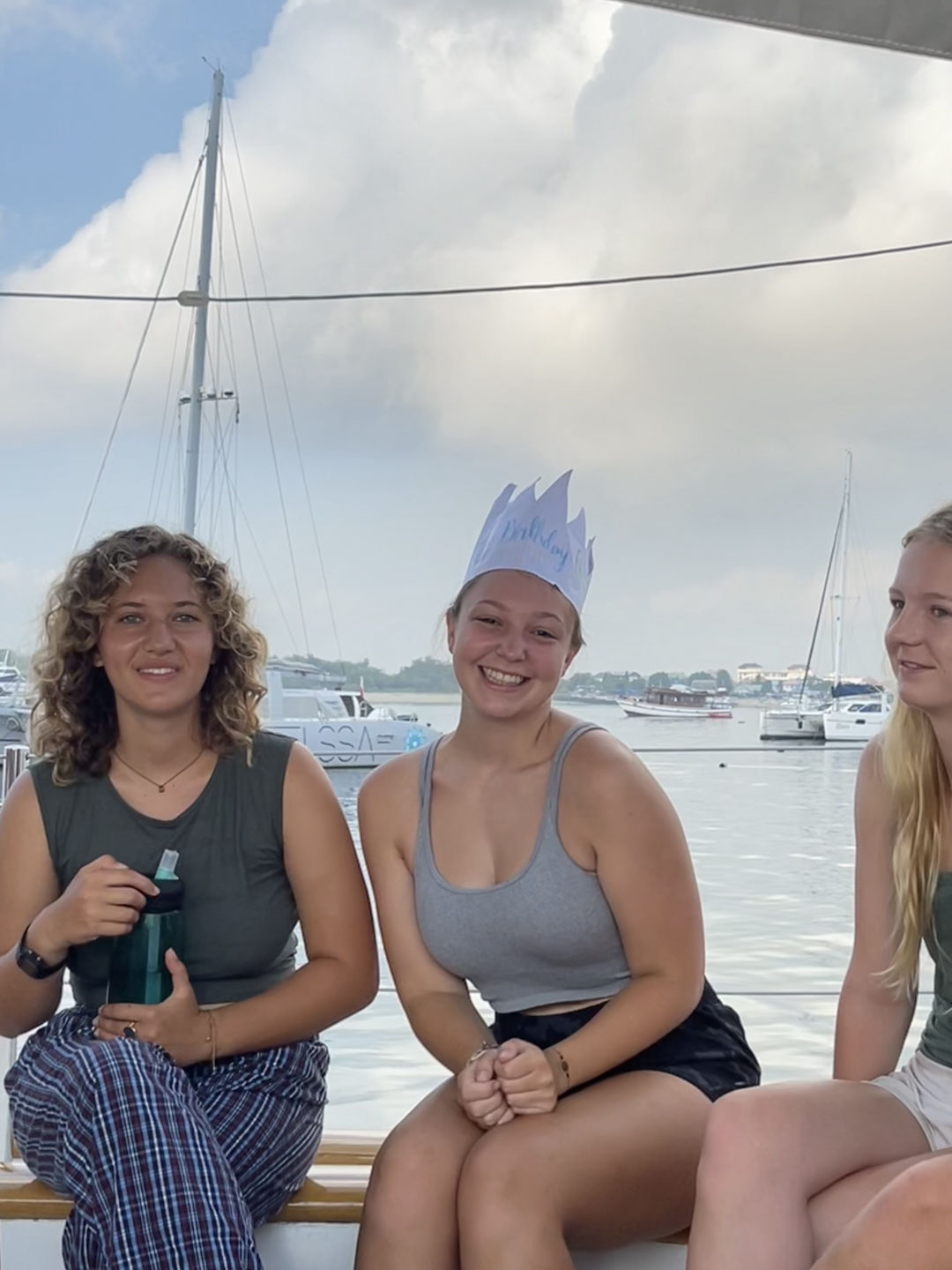 Today was another splendid day. We were woken up by Finn playing on the loudspeaker Morning Has Broken by Yusuf / Cat Stevens, and for breakfast, we had banana bread. Boat appreciation was next on the agenda, and we appreciated the hell out of this beauty. Multiple speakers were bumping while we deep-cleaned and changed our sheets. Several hours later, we finished the job the Italian way, allowing us to commence our insightful seamanship class, which was a class on the different parts of this gorgeous staysail schooner. After lunch, being a tasty salad mix, we headed on shore in Bali and turned up. Different groups went around, and a huge shopping haul occurred. We bought watches, trousers, swimsuits, shirts, snacks, and creatine, only the essentials. By 6 p.m., we all reconvened at an amazing pizza restaurant. These were the biggest pizzas Ive ever seen in my life! Post feast, we still had heaps of leftovers, which we took with us on the long walk back home. Back on the boat, we showed our new purchases to each other, and soon after, we submitted to our yawns from the long and fabulous day, and the boat went silent.