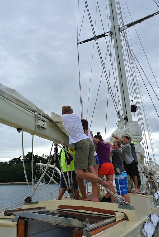 As the caption of the day depicts, today was all about Argo loving. To start off the day, we had a nice sleep-in and banana bread, fruit loops, and other chocolaty sugary goodness to kick start the day. Riding on this sugar wave with spirits running high, we tackled the rust stains on Argo. An hour later, after crashing, we still trucked through the next four hours of boat appreciation cleanup, showing Argo just how much we love her. After the most amazing chicken fajitas that have ever graced my pallet and customs cleared us through, we got ready to head to shore in FIJI! Some got onshore showers or local cuisine or bought outfits from thrift shops to get ready for church on Sunday. After heads were shaved and Mohawks created (slightly scary and a little bit uneven), we sat down for another delicious, delectable, delightful dinner. After dinner, I got help writing this blog from my oceanography teacher (who is the bombbbbb) and will soon have marine biology class and Grace’s How to presentation. A classy day full of classy people. Loving Fiji (Hi Mom :))