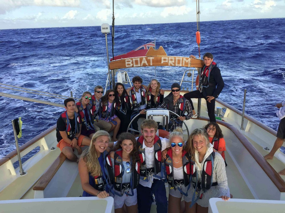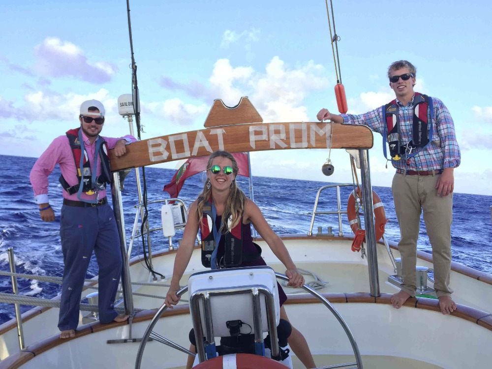Day 14 of passage started with a beautiful sunrise and cereal for watch team two on the 6-9 watches. Watch Team 3, who got the captains breakfast, then took the helm. Kevin makes breakfast for each watch team once on the passage, consisting of eggs, bacon, and toast. After watch, we had a delicious pad Thai made by our head chef, Tacha. We then followed our normal class schedule, with marine biology and then PSCT. After that, we had showers and then got ready for boat prom! Boat Prom was organized so that when we changed our clocks, the extra hour we had would be used for Boat Prom. For the squeeze, we talked about our favorite school dance experiences and then had an amazing chicken pot pie. Right after cleanup, Prom began! Everybody took to the salon and got our hour of dancing while leaning from side to side. Veronica successfully crowd-surfed, and Hilary and Townes danced in the center of the circle. The night ended with Watch Team 1 taking over and everybody else going to sleep.