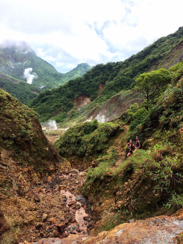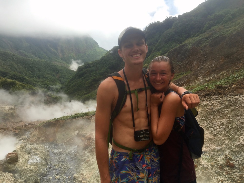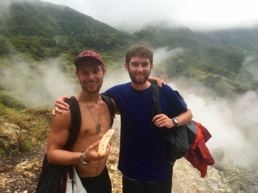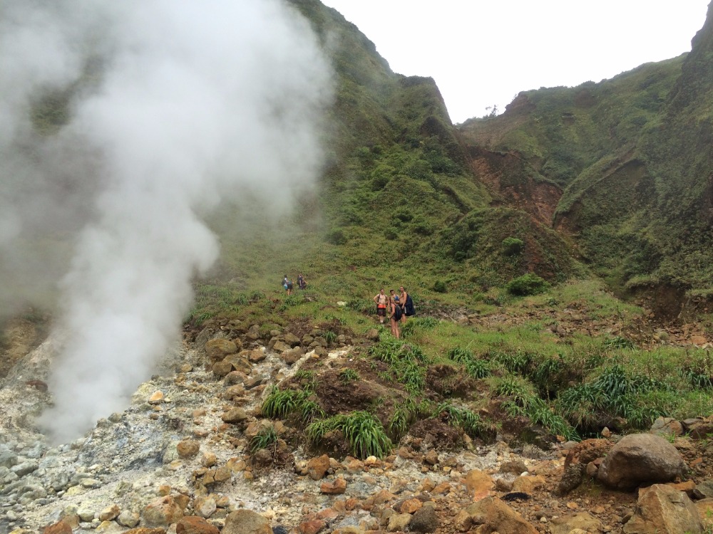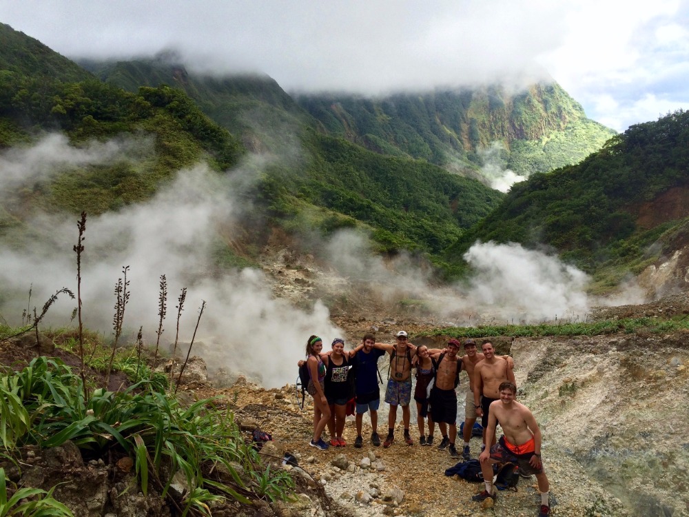 After a sailing-style Halloween, the crew was up and at ’em for our 6:30 wakeup for the Dominica Boiling Lake Hike. As excited as we all were to see the only active boiling lake in the world, the hike was said to be extremely strenuous and about eight hours long. But despite this, we left in high hopes of conquering our next adventure. The first hour or so was a consistent incline of stairs through the rainforest, and just when I thought I couldn’t take another step, we broke through the trees and saw the most magnificent view. Our guide, Pancho, pointed out the rising steam in the distance to show us the direction we needed to head in. From that point on, the hike became more bearable as we continued due to the fascinating atmosphere and more downhill terrain. About a quarter into the hike, Pancho directed us to a boiling stream, where he then removed about a dozen eggs from his pockets and pulled out a strainer-looking contraption “to boil the eggs,” he explained.
