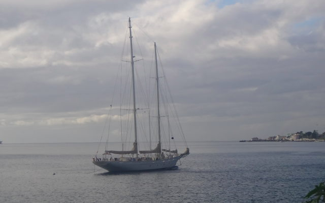 Today, the unpredictable turns of our voyage on the Argo lead us on a hike to the last boiling lake in the world. This natural wonder is nestled in the jungle-covered peaks overlooking the capital of Dominica, Roseau. After a slightly disorientating ride up the twisting mountain road, our guide, Poncho, led us into the forest once used in “Pirates of the Caribbean.” We soon learned, however, that we were not prepared for the trek ahead of us as we panted up the trail behind our barefoot guide. The breathtaking jungle landscape eventually started to acquire a rotten egg stench, and before we knew it, we came out upon the Valley of Desolation. This sulfur-dominated area is shaped by latent volcanic activity with striking bluffs encircled by shifting mists. Poncho made full use of this landscape to prepare hard-boiled eggs in one of the bubbling brooks along the trail. A mid-hike siesta was found in a group romp in one of the larger hot springs closer to the lake. Finally, after three and a half hours, we found ourselves on the edge of the boiling lake. When the mist cleared, we were rewarded for all the mud, sweat, and falls with a spectacular view of the boiling water in the crater before us. After making our way back, we spent our final storage of energy exploring a set of river caverns incorporated in “Pirates of the Caribbean.” Though arduous, exhausting, and trying at times, this trip proved worth every effort, successfully making us turn in early for whatever ventures await tomorrow!