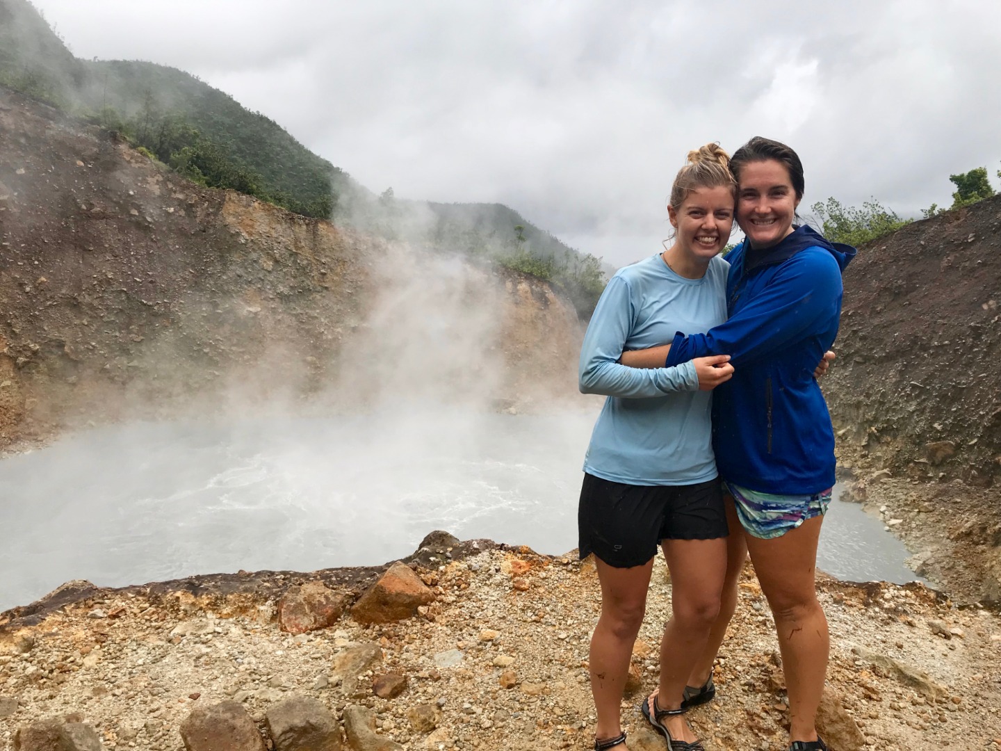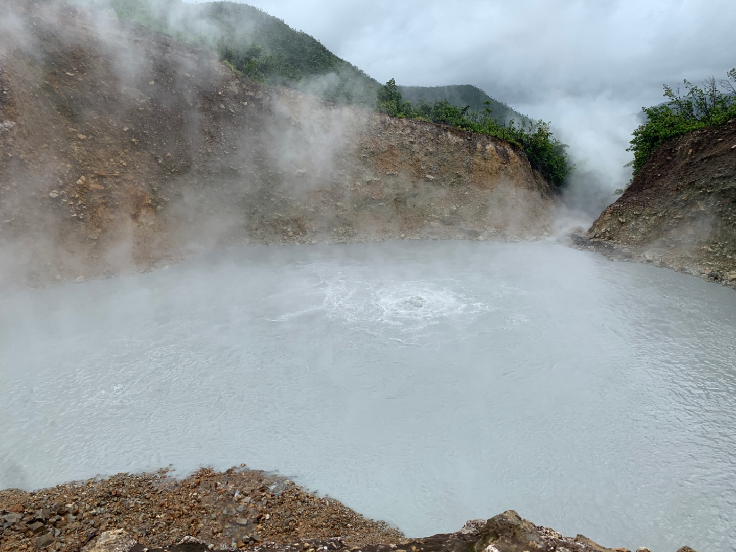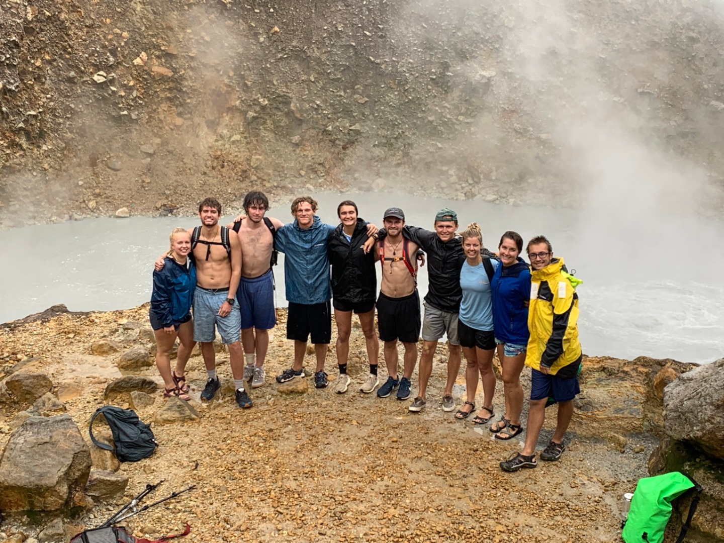 Until that point, we had been pretty dry the whole time, but after getting drenched underneath our rain jackets, we decided to say send it and ran through the mud and puddles. After about an hour of easy hiking through the terrain, we finally got to a river that had a very strong current that felt as if it could sweep you off your feet if you didn’t get a good footing. We crossed the river and began our incline up the side of this mountain-like hill. After reaching the peak very parched and exhausted, we decided to take a quick snack/ lunch break to get some more energy for the rest of the hike. The next stop was the “Valley of Desolation,” which was a spot that had very hot streams coming down the hill. Some were warm and nice to stick our cold feet in. Others were hot enough to boil eggs in (which we did!). After a quick lunch of fresh bread and fish provided by Pancho, we were led down some serious terrain before reaching the sulfuric-smelling, beautiful Boiling Lake. The lake was breathtaking once the clouds had passed over it and you could finally get a good view of the lake, and the smell was something else! After eating some more snacks and getting some sweet photos, we decided it was time to depart as some of us had become very cold since the wind had picked up a lot, and it had continued to rain on and off. We carefully picked our way across the mixture of rocky, slippery, jungly terrain back to where we began at Titou Gorge. We got back to the cafe, which we started and had a quick snack before jumping in the gorge, which was very refreshing since it was ice cold. After we had a dip, and some of us swam up to get a glimpse of the waterfall, we got back in our buses and departed back to Ocean Star for a Leadership class with Jon. After a nice meal that was prepared by Kennedy, we cleaned up, and all began writing our papers for oceanography that’s due on Friday. I hope you enjoyed the blog again. See you all back here in 14 days.