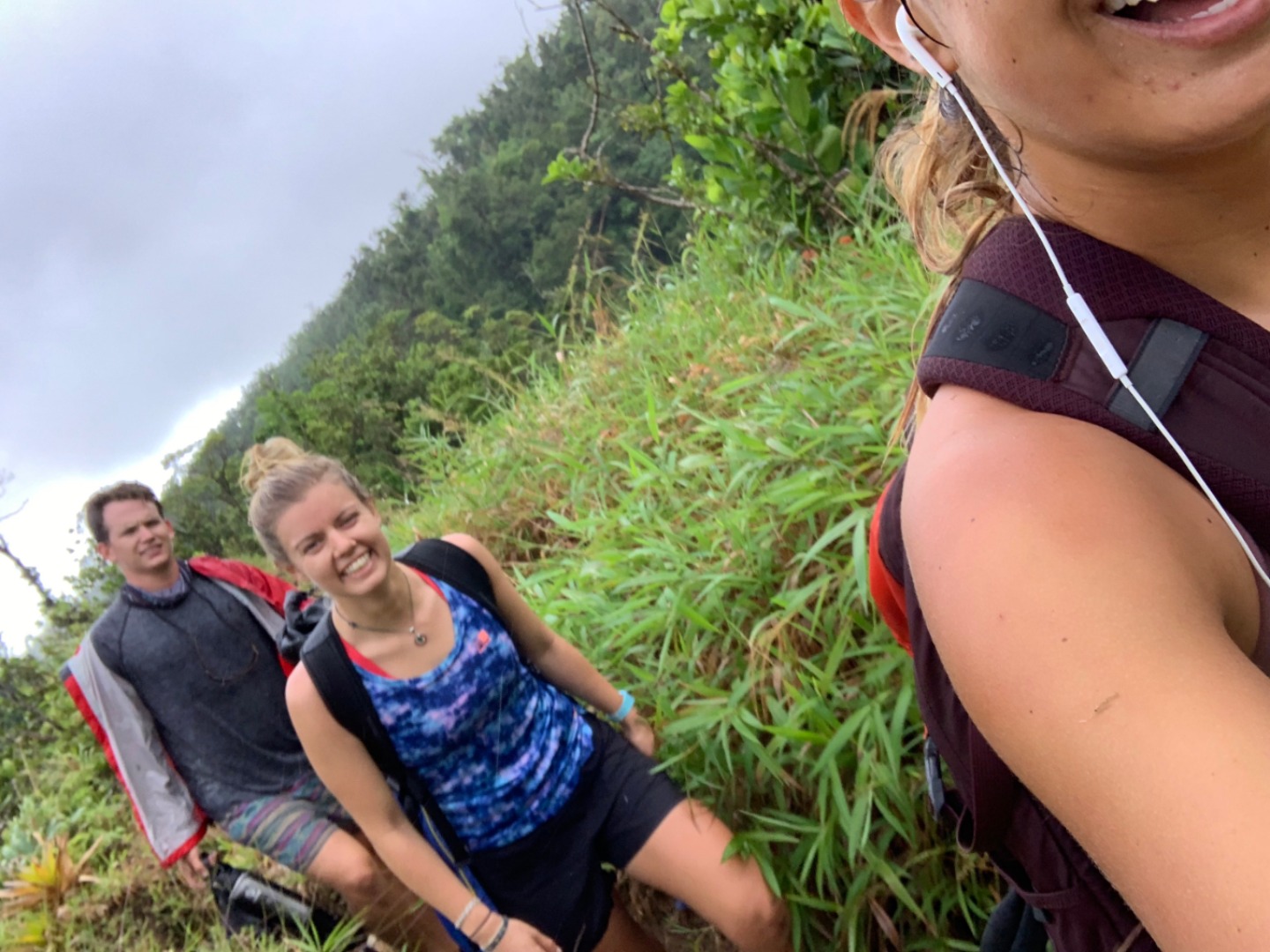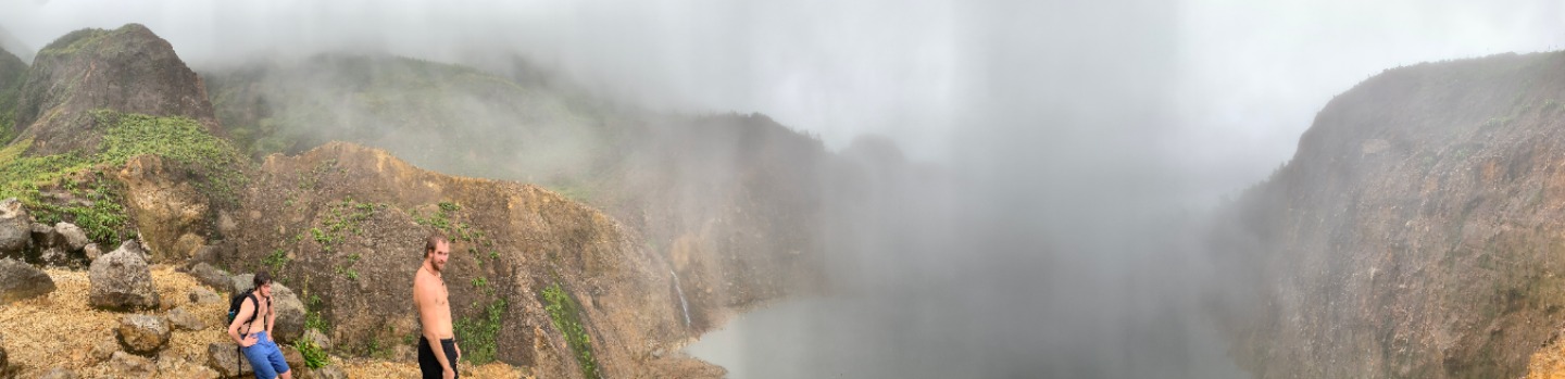 Hey, ya’ll, it’s your boy once again writing your daily blog, the Garfather. I hope everyone had as good of a day as we had as we went to the Boiling Lake today in Dominica. We had a nice and early wake up at 5:30, which everyone was super excited for… not really. But everyone did wake up with a lot of high energy this morning! After eating some yogurt and fruit, we departed on our dingy ride to greet our tour guides for the day, Pancho and Slice. After a warm greeting from them both, we waited for our bus to Titou Gorge. While waiting in the drizzling rain, we thought that was going to be the worst of the rain for the day, but worse was yet to come. After arriving, Matthew, Miranda, and I carefully walked along the trail missing puddles and mud before a storm blew over us.