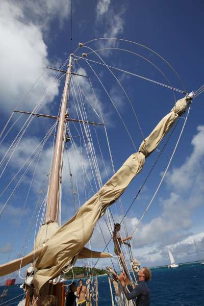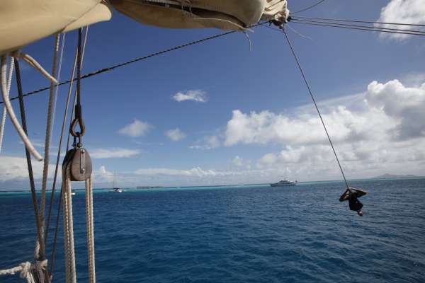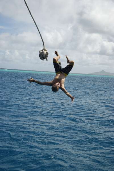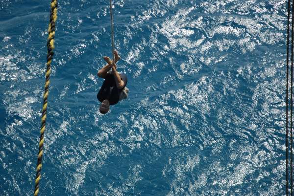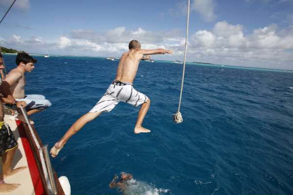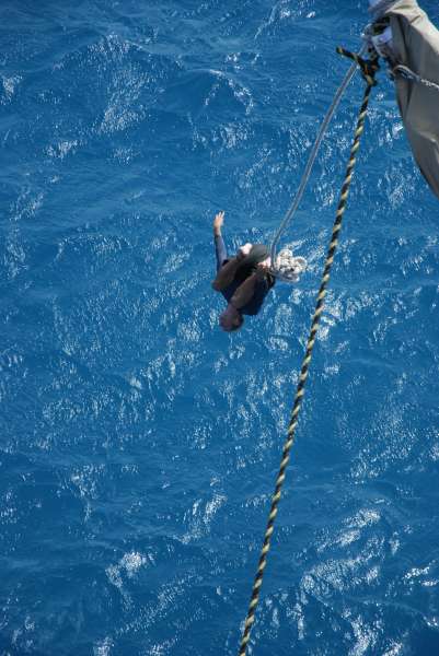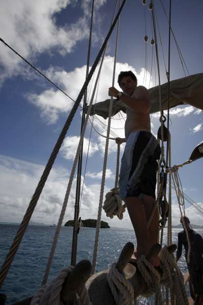 This morning, the crew reluctantly awoke to the sounds of breakfast and loud, upbeat rap. Our chefs of the day, Dan and Kyle, whipped up eggs, bacon, and bagels, giving us enough energy to get through our back-to-back morning science classes. After lunch, we set up Ocean Star for the famous BOOM SWING. This activity requires the crew to raise the boom and swing it out over the side of the boat, leaving a dangling rope over the water. We all took turns climbing up the boat and swinging like a wrecking ball out into the water. The wind picked up and was blowing harder than we’d seen during our stay in the Cays. Our staff set out, taking giant kites and sails to test the winds. Unfortunately, Jack cruised and had the cleanest break we’ve ever seen on a windsurfing mast, and Kevin was shown who was boss by his kite. Both of them were rescued by our beloved dinghies, and we learned that “staff needs to be watched too.” It was an excellent day, capped off with a delicious dinner and a student leadership class with Jack. Another memorable day on Ocean Star has passed. Shout out to Alexandra, friends, and family. Skipper of the Day, Josh
