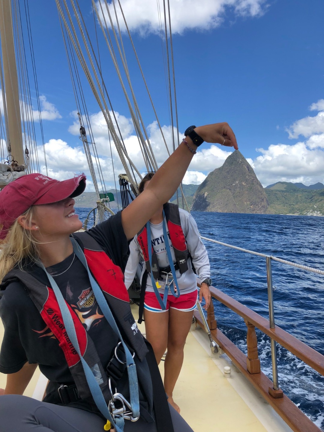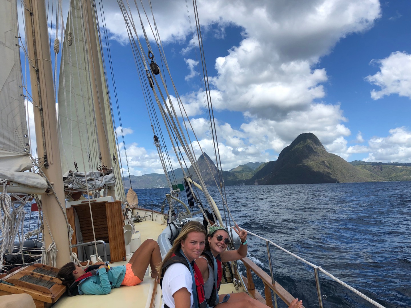 Okay, I am now going to describe to you, in vivid detail, Ocean Star and its spectacular crew on their sail from St. Vincent to St. Lucia. I recommend you close your eyes. Actually, no, don’t because you are reading this, but just try your best to imagine. Glassy waters and a horizon broken only by the sharp and jagged steppes of an island shrouded in a mysterious fog. A brazen and intrepid young crewman, the various lines and riggings for this spectacular gaff-rigged schooner. The smell of salt and sargassum fills the nose. A sun, unchecked and brash, beat down on them as they struggle to apply banana boat sunscreen and search for shade wherever it may be. A good sail. A good day.