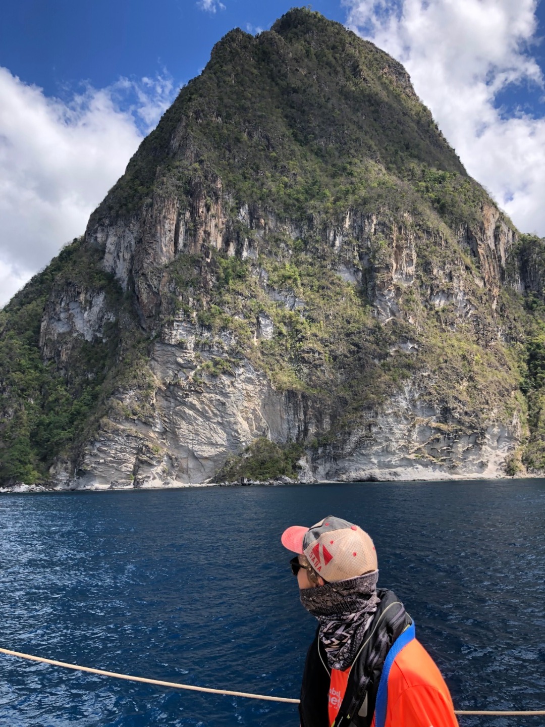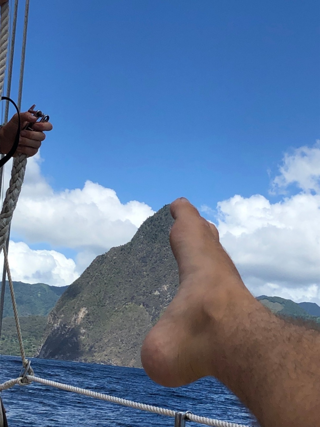 By the time I had emerged from my nap for lunch, St. Lucia was visible on the horizon. The Pitons erect and noble against the light blue, midday sky. It was time for my team’s watch. We sat about in the cockpit discussing various matters of which I cannot currently recall. With Sash steering us on course before we knew it, we were approaching our mooring ball. We settled in a beautiful spot, under the shadow of Petit Piton, majestic and monolithic.