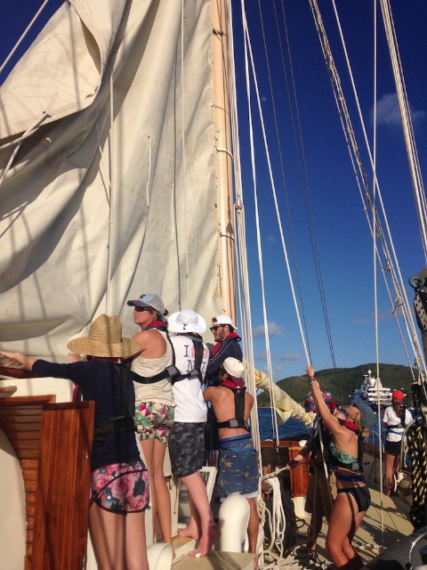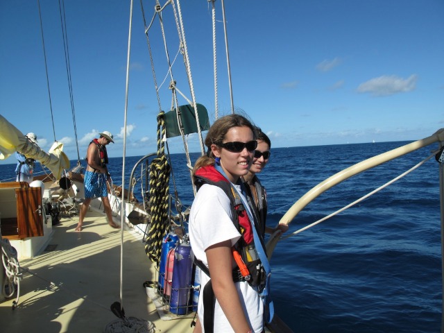 After breakfast, we finished our last confined dive for our Open Water certifications – a great way to start off the day and one step further to becoming certified divers! Following our open water dive, we set sail and took Ocean Star out into the Caribbean and into Gorda Sound, Virgin Gorda. On the way, we practiced a man overboard drill and learned how to raise the foresail. Upon arriving in the bay, we saw all the luxurious yachts and catamarans anchored around. We set up dinner, where my squeeze question for everyone was, Name something youve learned about someone here upon boarding Ocean Star. We all shared hilarious stories about the new people weve met here and what we know about them that strikes as out of the ordinary. It is great how well we already know each other and know that we will only get closer over the next 73 days. Now we are getting ready to go on our first night out on dry land, excited to feel ground on our feet for the first time in a week!