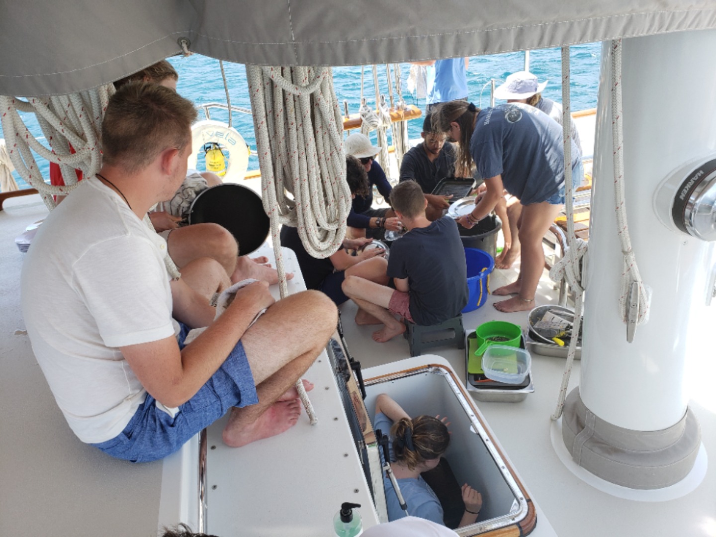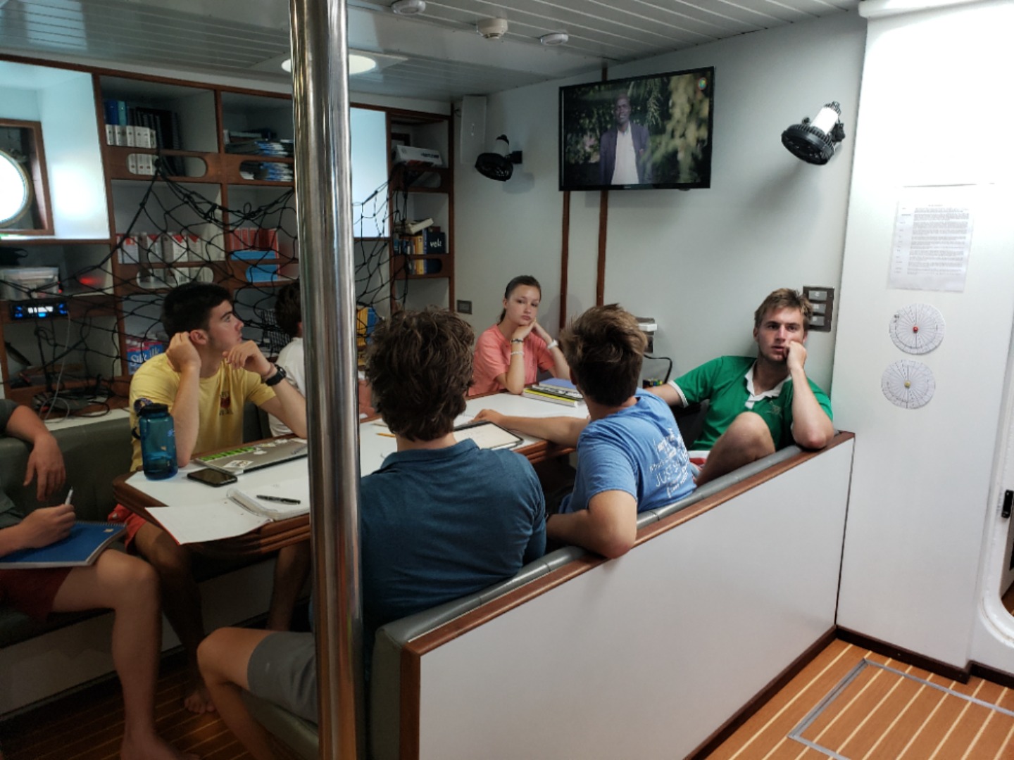 Holy moly! What a day! After pancakes for breakfast, we attended both leadership and seamanship class. Then after our delicious Quesadilla lunch, we attended a second seamanship class, and some of us attended our first PSCT class. Then after that, we got some time on Sandy Spit, where we swam, played ball, and explored the island. Then we came back, ate veggie chili for dinner, and went out for a night dive. Reef Sharks, Octopuses, Bioluminescent plankton, you name it, they all came out to see what was up. Like I said, what a wild day. And the best part is theres another one coming tomorrow, but thats for the next skipper to blog about. This is Joshua Rubenstein signing off. Love you, Mom and Dad!