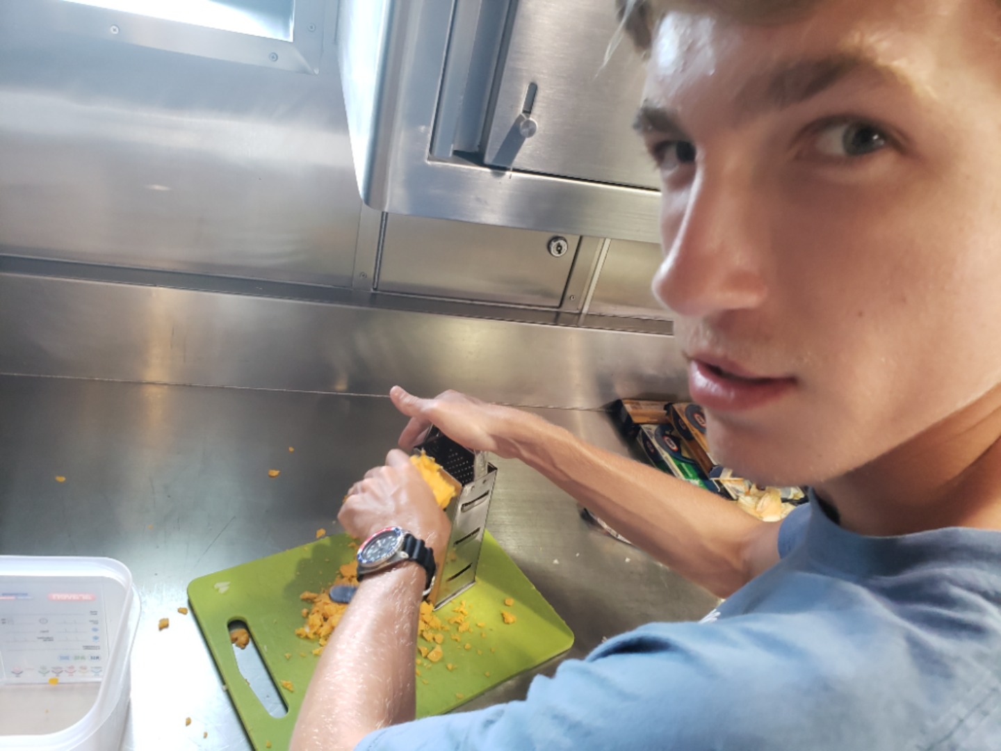 1 picture of everyone cleaning after lunch: Cam, Ceci (down the gopher hole), Ben, Courtney, Elan, Darius