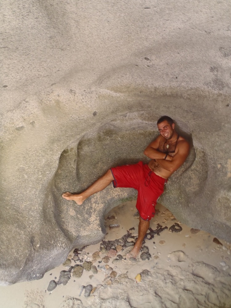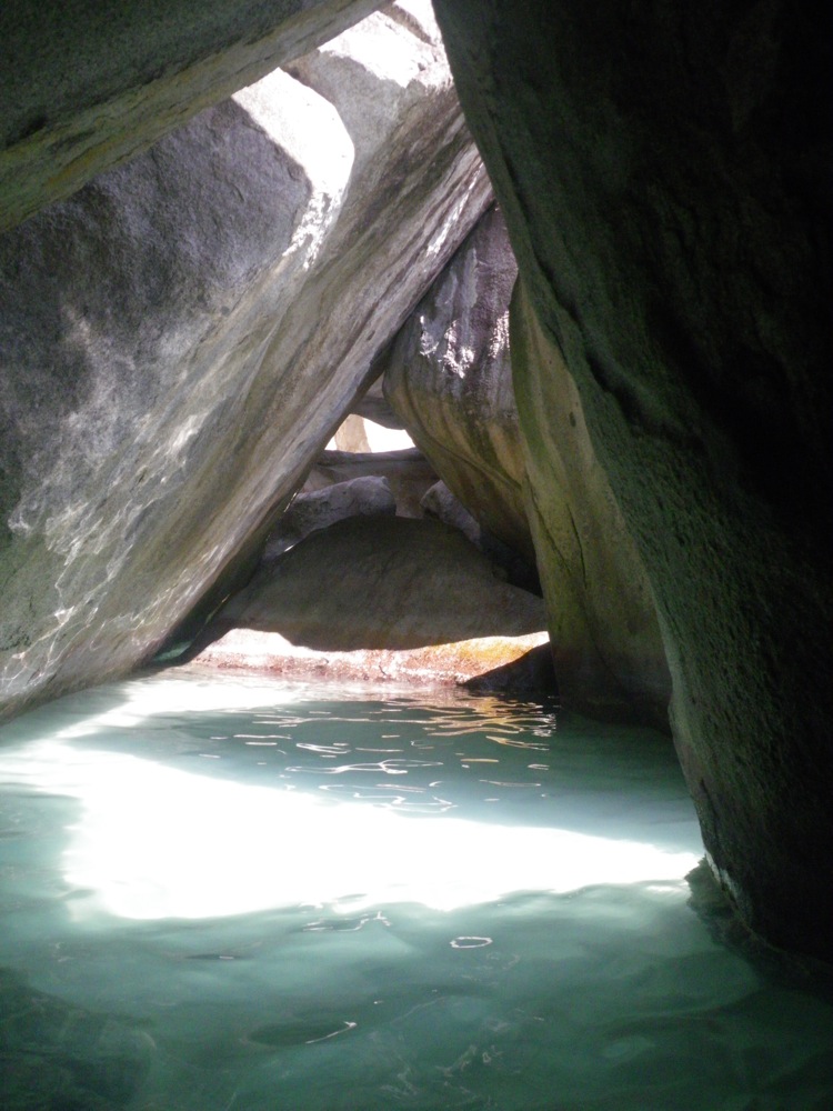 Days like today remind me of why I do what I do. We began today with an early breakfast and a lot to look forward to. All morning, three dive groups switched out in underwater exploration of The Rhone, a sunken wreck of a vessel, where legend tells about the remainder of souls on board. Between dives, we all spread across the entirety of the salon, practicing our chart and navigation work. With the MTE final exam imminent, deadlines for finals and actually learning this material loom in the near future. Between charting problems and diving, I could look around Argo and admire the bright blue water surrounding us. It is difficult to imagine many places more beautiful. We are a genuinely lucky bunch. After diving, we made the short motor passage to The Baths in Virgin Gorda. Looking more like a strange new world, we enjoyed the strange (and huge) rock formations on the coast that paralleled some of the most fantastic snorkeling I have ever done. The shifting of the Earth caused pressure to raise very, very, very large rocks, creating cave-like pathways between them. Bringing my camera, I tapped out of snorkeling early to go steal some less-rushed photographs of the iridescent water lit through the cracks in the rocks. However, as I rounded the corner, one of the students ran up, urging me to come quick! One of our beloved students, Jake, had dislocated his shoulder. As I ran back, I felt it almost unnecessary to medically assess him, as our shipmates had already banded together to take care of the situation. Despite paying an unfortunate trip to the Spanish Town Clinic, it was a fantastic example of teamwork. After braving the shoulder relocation, we returned on board to an overjoyed family of shipmates, a phenomenal sunset, and Feel Better Soon brownies. Today was ultimately a good reminder of things to be thankful for.